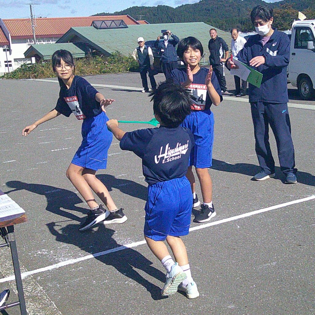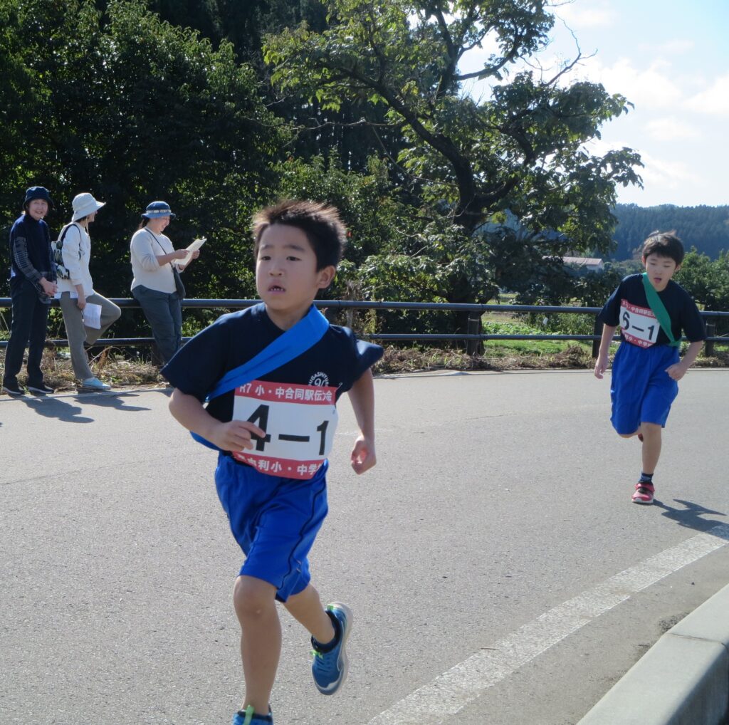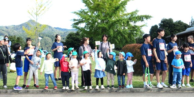 運営にあたってくださった関係団体の皆様、保護者の皆様。応援にかけつけてくださった地域の皆様、保護者の皆様、えみの森の園児の皆さん。本当にありがとうございました。子どもたちは、たくさんの方々への感謝の思いを胸に走り、仲間同士の絆、東由利地域の絆の深まりを感じたようです。