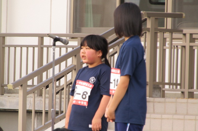 閉会式後に、陸上の全国大会に出場する小野さんの壮行会。中学生が先頭に立って、エールを送ってくれました。