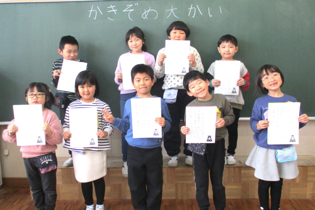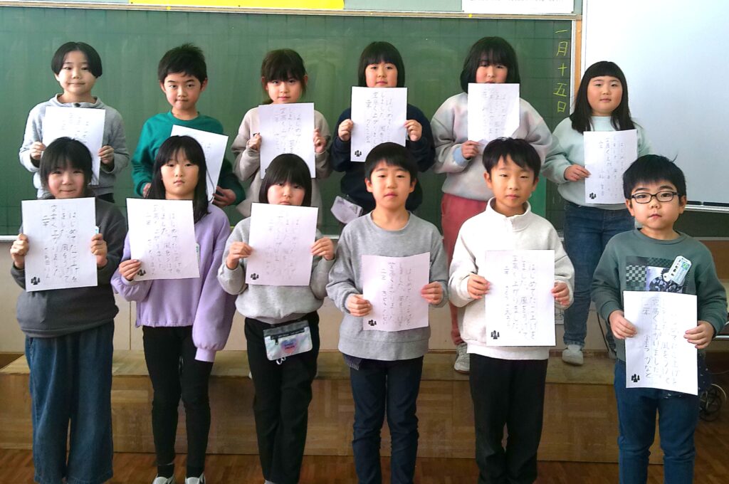 書いた中から子どもたちが自分で選んだ作品を、1月30日まで玄関ホールに展示しています。ぜひ学校にお立ち寄りください。