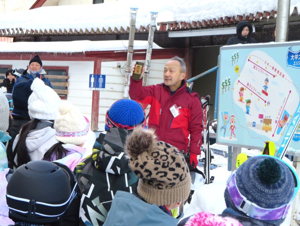 大平スキー場の管理をなさっている長沼さんのご厚意により無料でスキーを体験でき、しかも、スキークラブの方やプロ級の保護者の方による手厚い指導を受けられ、リフトの乗降にもたくさんの保護者の方がサポートしてくださり、なんとも贅沢なスキー教室に感動してしまいました。何より、短時間でぐんぐん上達し、転んでも起き上がり、笑顔で一生懸命に練習している子どもたちの姿に感動でした!