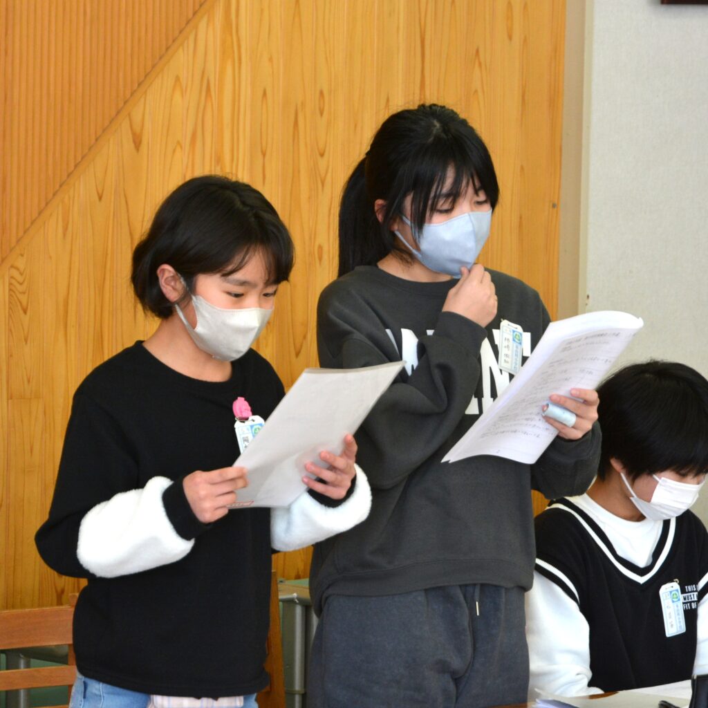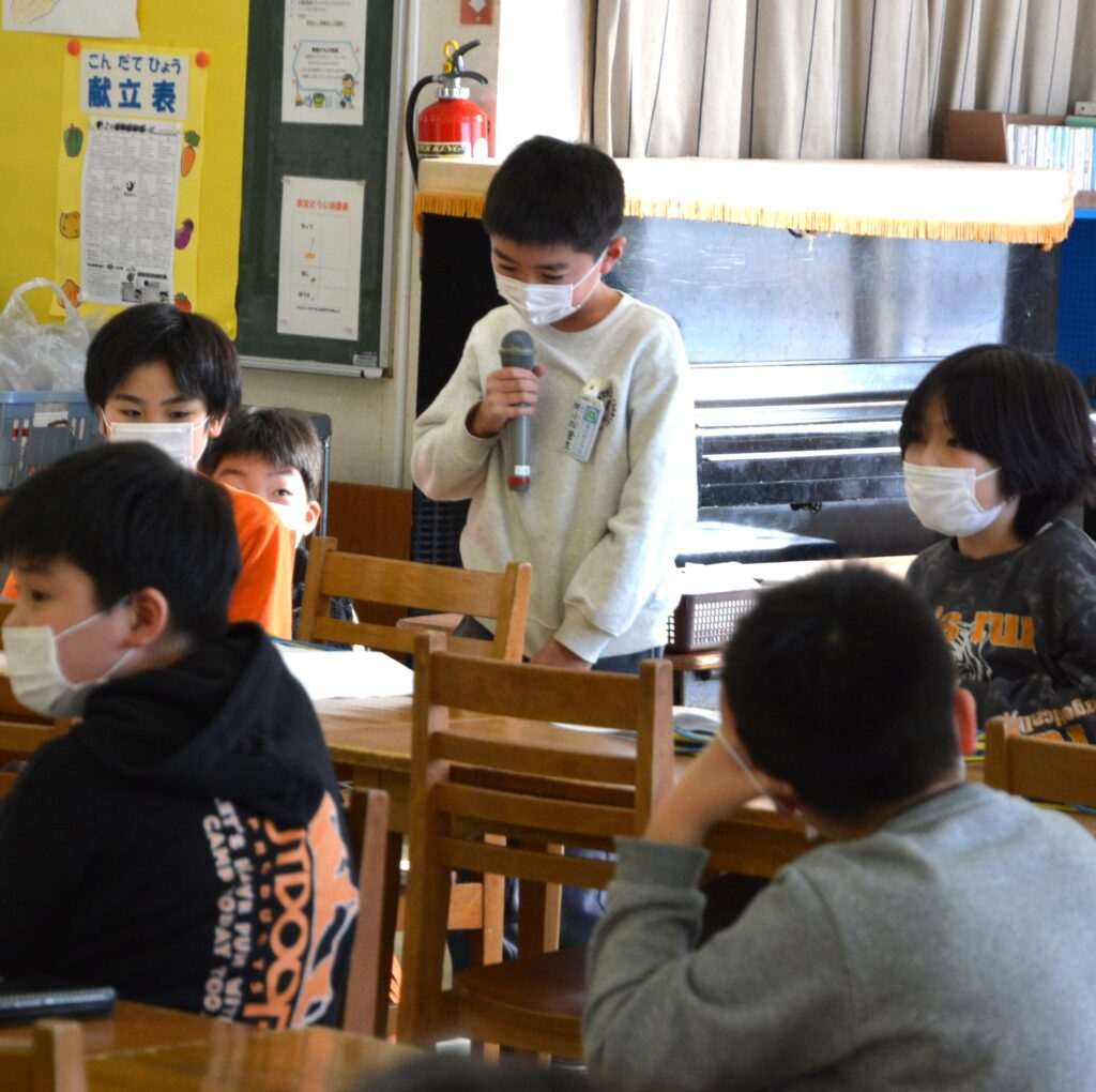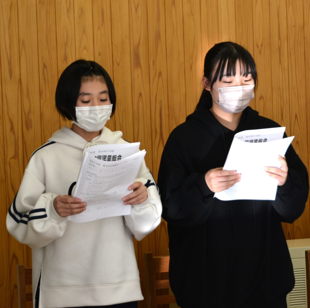 各委員会の代表者(6年生、5年生、各1名)が、後期の活動の振り返りと来年度に向けての抱負を語りました。