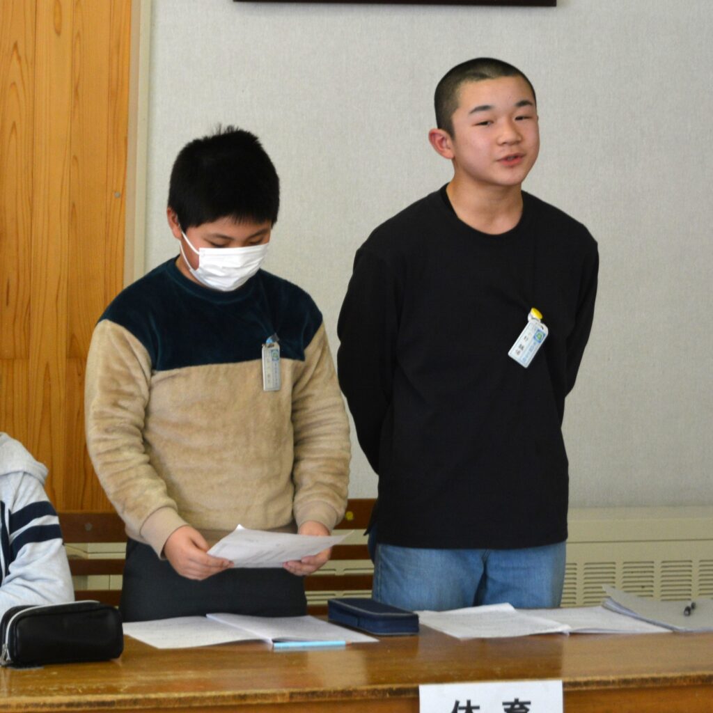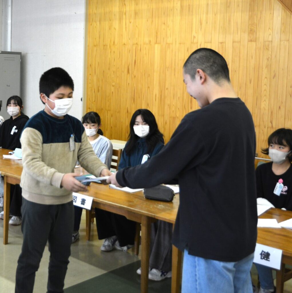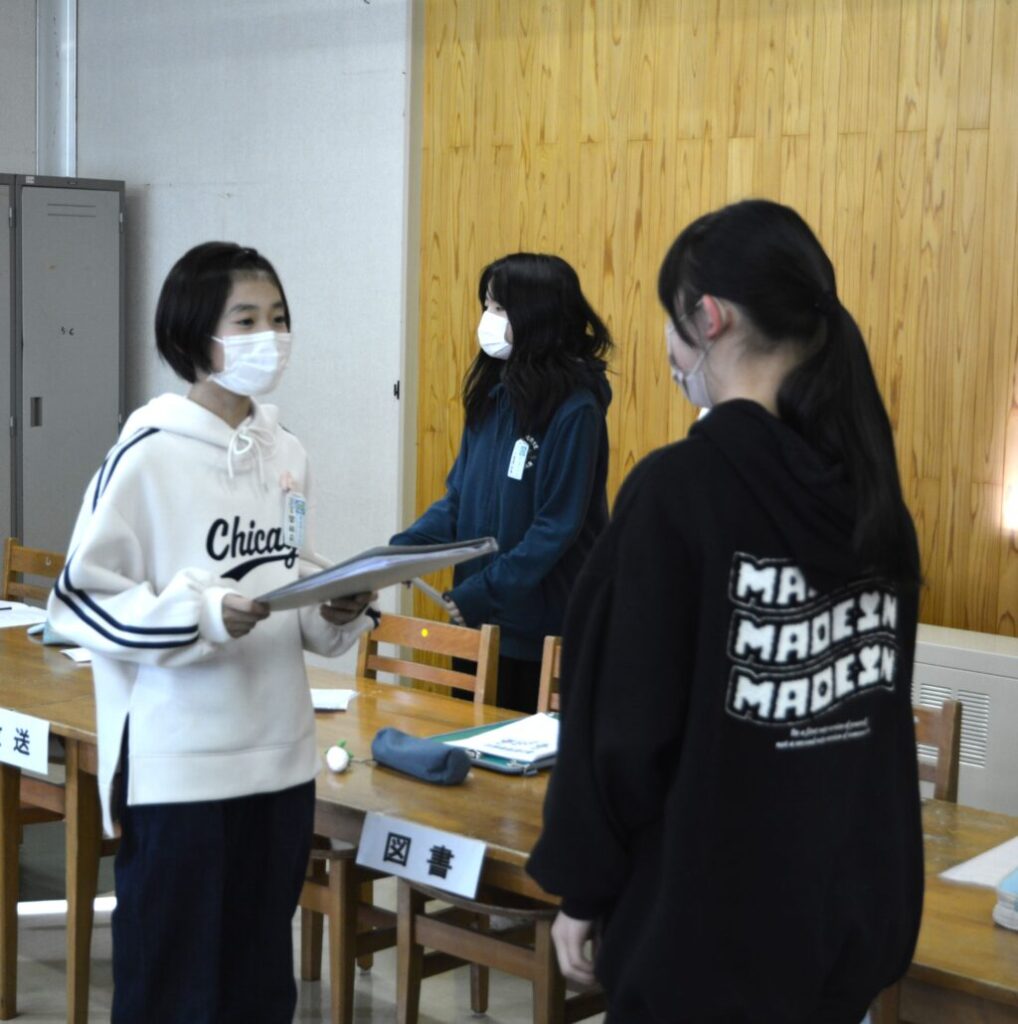 各委員会の代表者(6年生、5年生、各1名)が、後期の活動の振り返りと来年度に向けての抱負を語りました。
