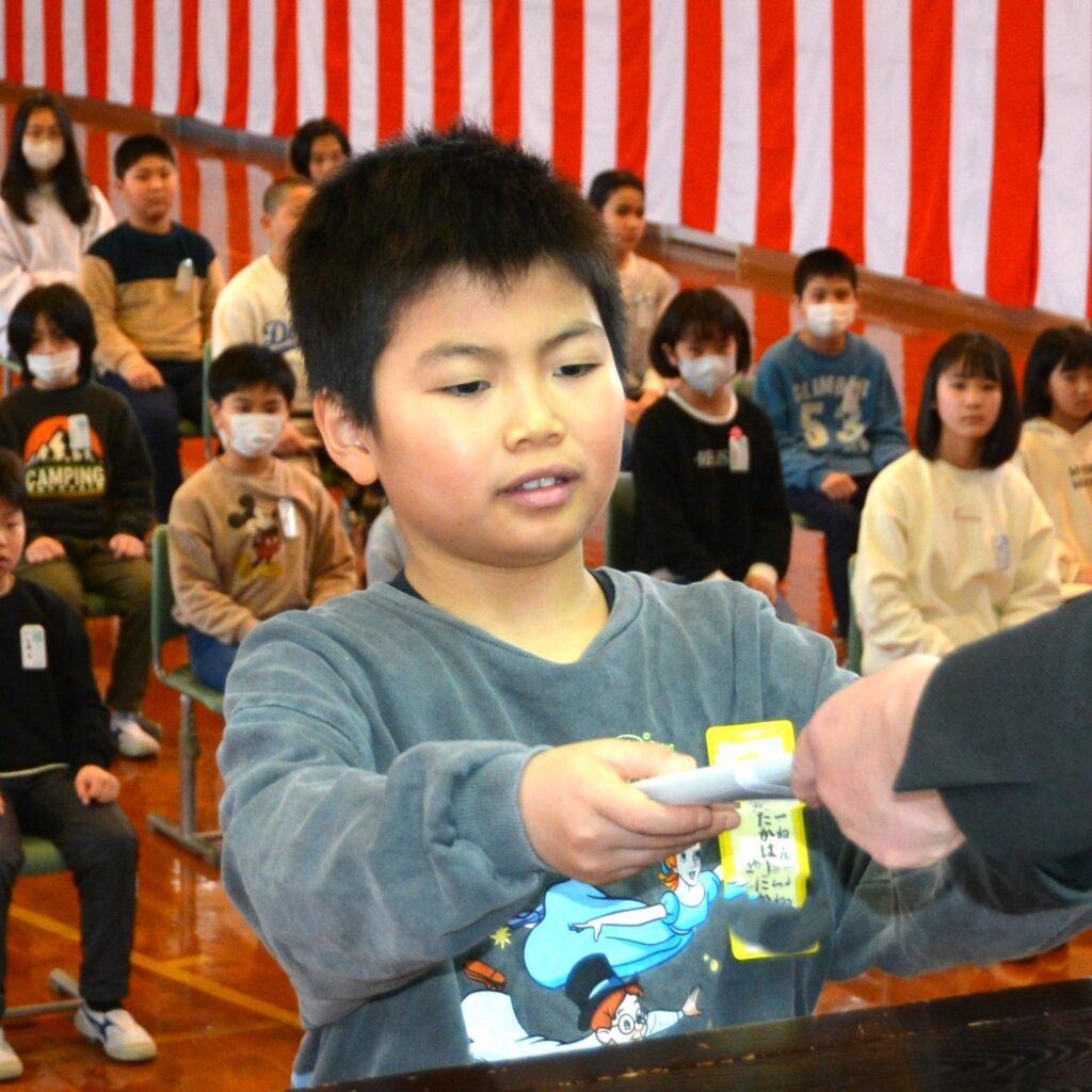 各学年の代表者が壇上で修了証を堂々と受け取りました。