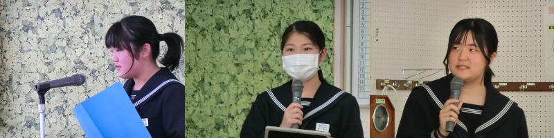 1年生代表は遠藤**さん、2年生代表は清水**さん、3年生代表は古川**さんです。