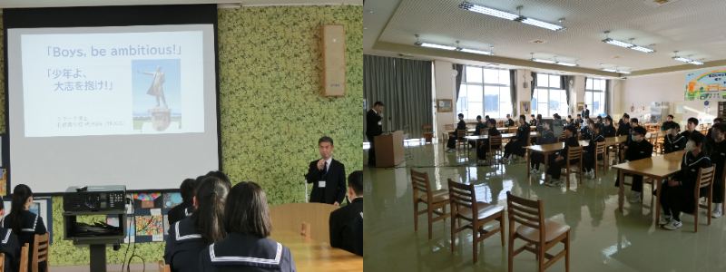 長期休み明けの体育館は寒く、今回は食堂で集会を行いました。