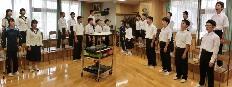 今年度、合唱コンクールが復活し、各学年単位で課題曲と自由曲の2曲を歌います。