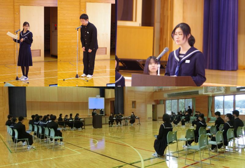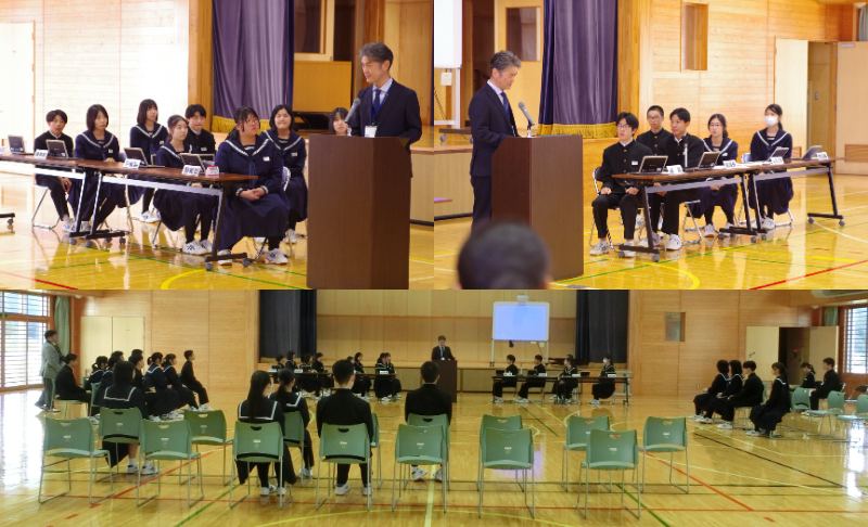 校長先生から励ましと期待の言葉をいただき、東由利中学校後期の生徒会のスタートです。