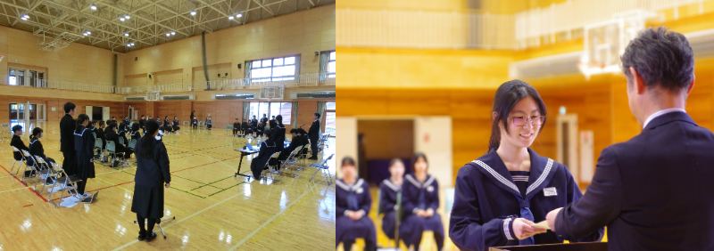 代表して校長先生から任命状を授与されたのは新生徒会長の2年大庭**さんです。