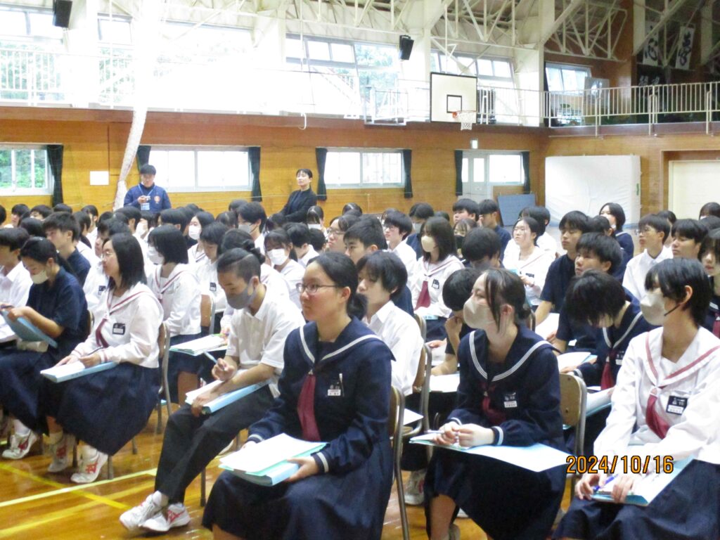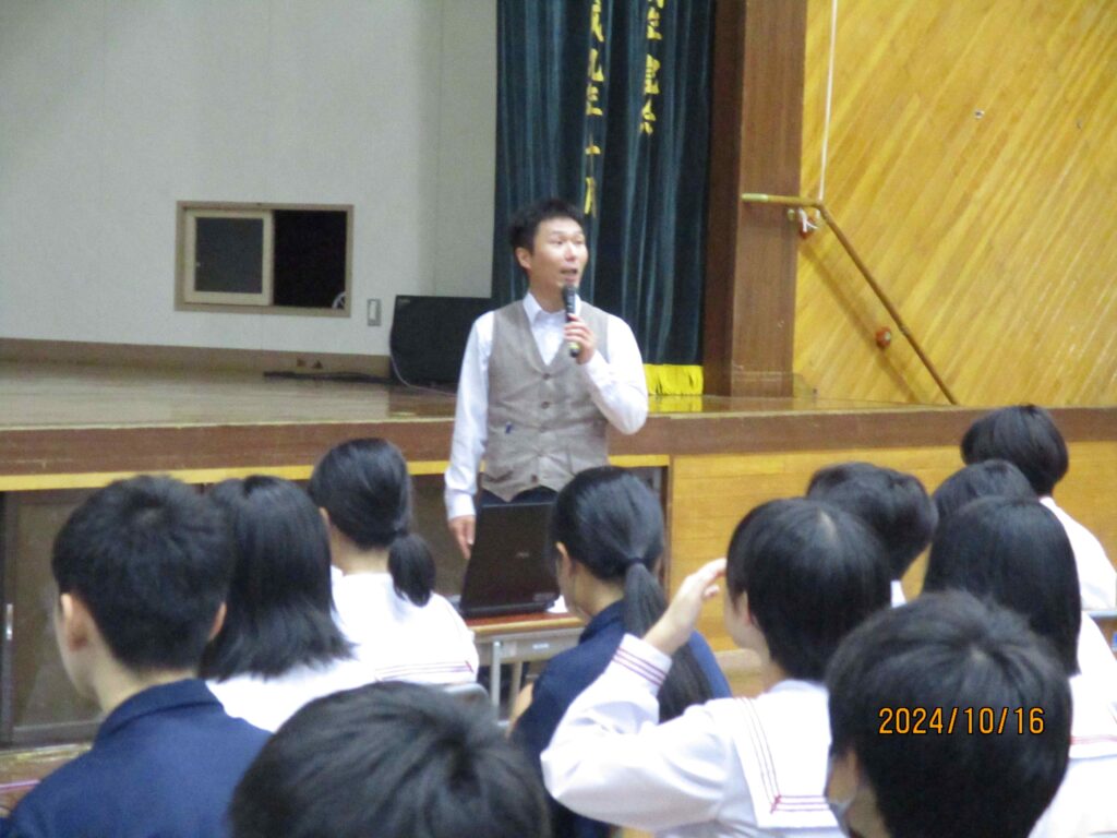 10月16日(木)の6校時に、本校の2年生を対象に本校スクールカウンセラーの佐藤健先生から「ストレスとの上手な付き合い方 ~自分の助けになる考え方~」の演題でご講話いただきました。