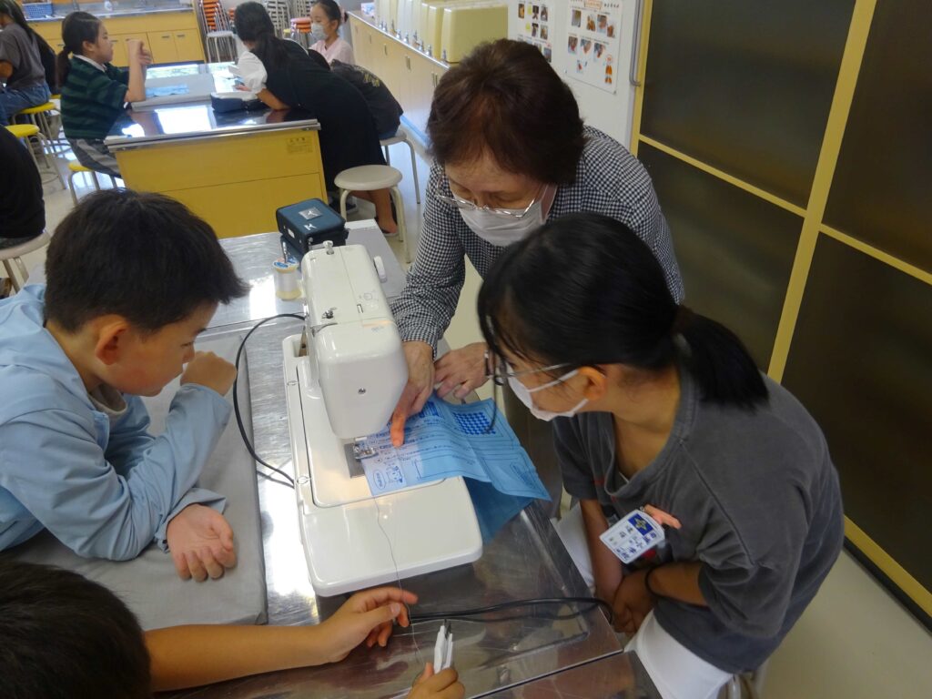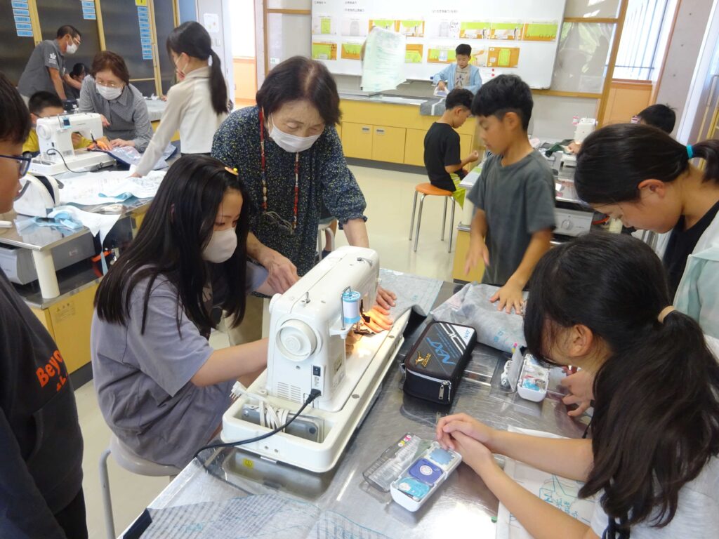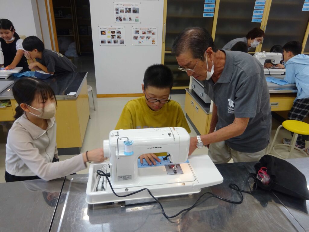 5・6年生の「ミシンの学習」が効率よく行えるよう、地域の方々に指導のお手伝いをお願いしたところ、種村和夫さん(亀田)、佐々木孝子さん(道川)、今野エイ子さん(道川)、鈴木博子さん(亀田)の4人にお引き受けいただきました。子どもたちに寄り添って教えていただき、ありがとうございました。(写真は、9月30日(火)の5年生の授業の様子です)