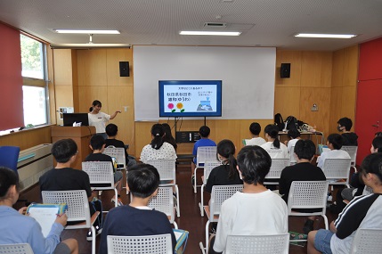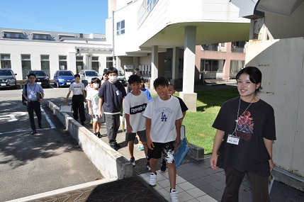 9月25日(木)に6年生が秋田市雄和にある国際教養大学(AIU)を訪問しました。キャンパス内を見学したのち、日本人学生や交換留学生らと交流しました。残念ながら有名な図書館は休館日のため見学できませんでしたが、様々な施設を見学し、キャンパスの雰囲気を十分に感じたようでした。