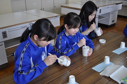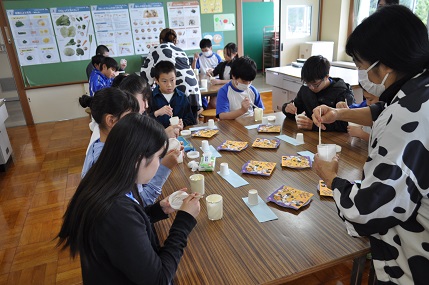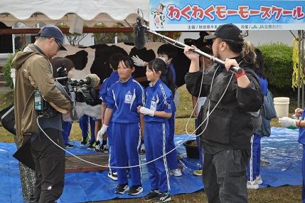 10月14日(火)、5、6年生を対象に「わくわくモーモースクール」が開催されました。由利本荘市内の酪農家、柴田さんご夫妻が講師です。搾乳体験や牛とのふれあい、バターづくりなど、貴重な体験をすることができました。牛に触れたときの子どもたちの目の輝きがとても印象的でした。企画・準備等にご尽力いただいたJA全農あきたの皆様に感謝を申し上げます。ちなみに、14日(火)18時10分からのNHK「NEWSこまち」で、このときの様子が紹介される予定です。