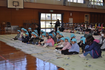 10月24日(金)2校時に岩谷保育園のうみ組の皆さんが、学習発表会の練習の様子を見学するために来校しました。1,2年生の発表を見学しとても楽しそうでした。1,2年生にとってもよい励みとなりました。4月の入学を楽しみにしています。