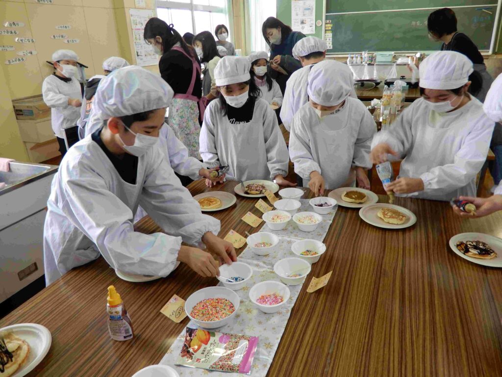 11月28日(金)4年生のPTCRが行われました。親子でホットケーキ作りに挑戦しました。たくさんのトッピングもあり、子どもたちは大喜びでした。おいしいホットケーキのできあがりです。お忙しい中ご来校いただきありがとうございました。