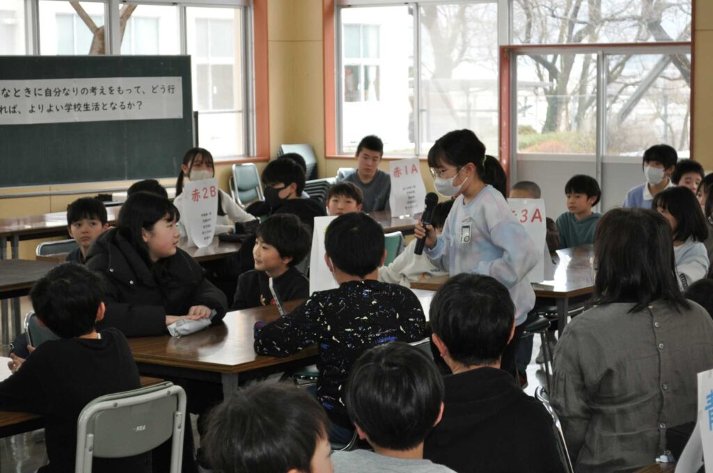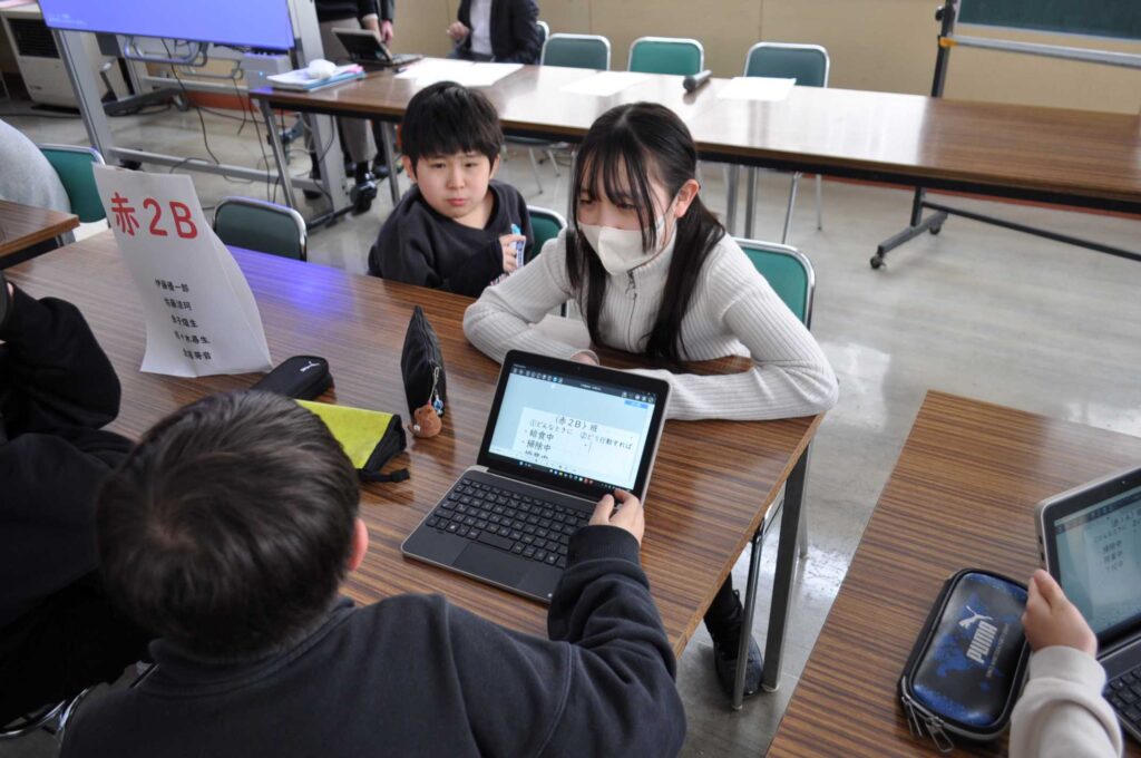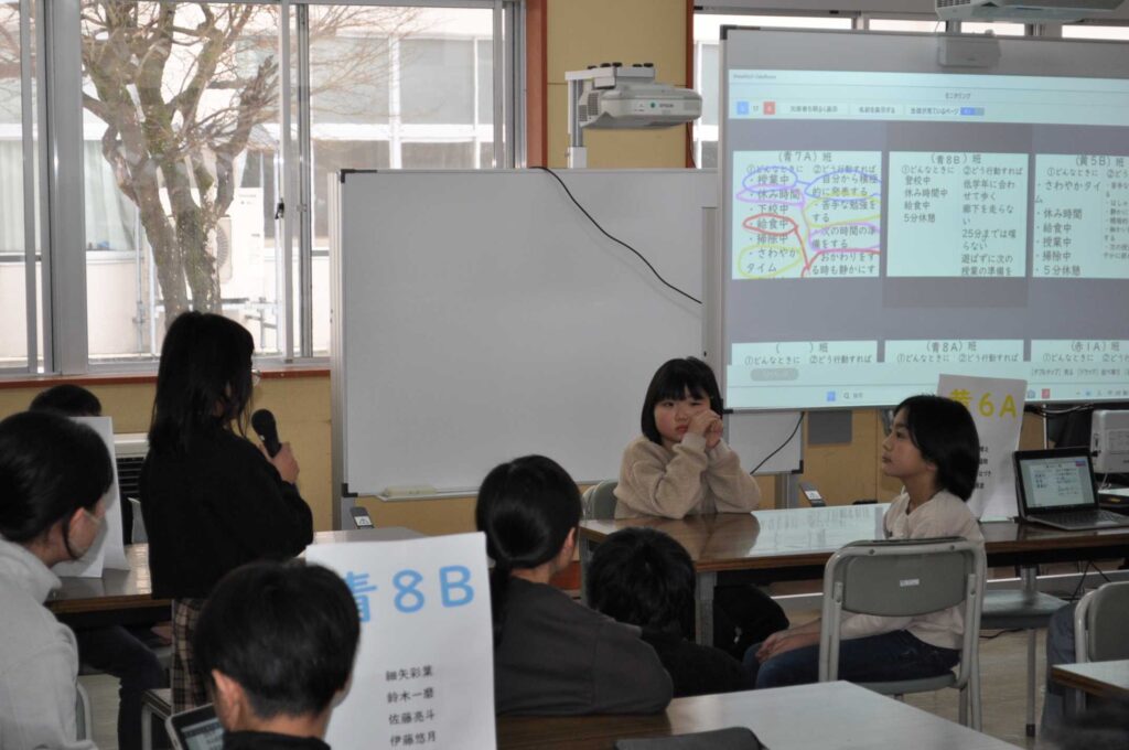 2月5日(木)に学校運営協議会を開催し、委員の皆様に今年度2回目の児童総会の様子を参観していただきました。児童総会では、本校の教育目標に関わる児童アンケートの結果を踏まえ、「自分なりの考えをもって行動しているか」を視点に話し合いました。縦割り班をもとにしたグループごとに「MetaMoJi ClassRoom」というツールを用いて情報共有をしながら話し合いました。