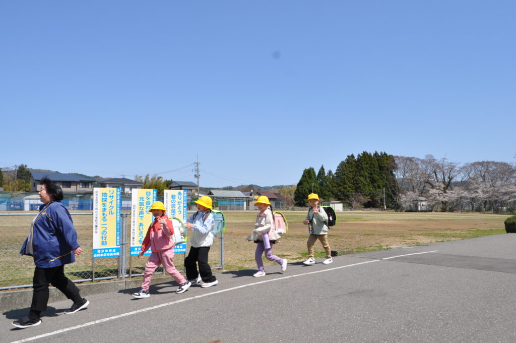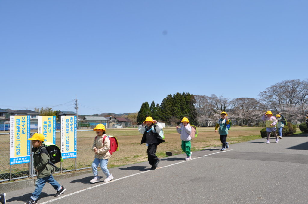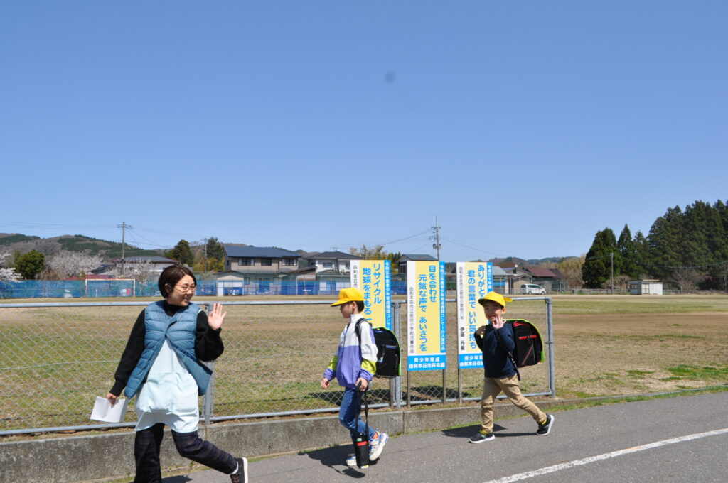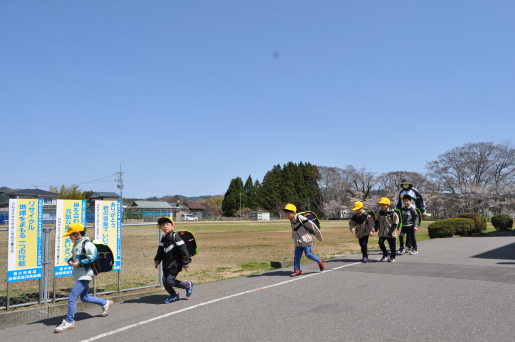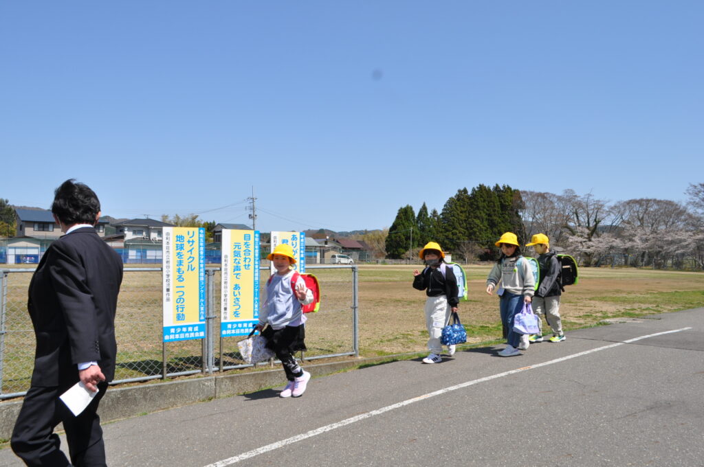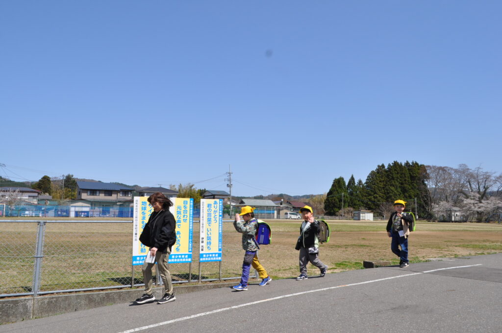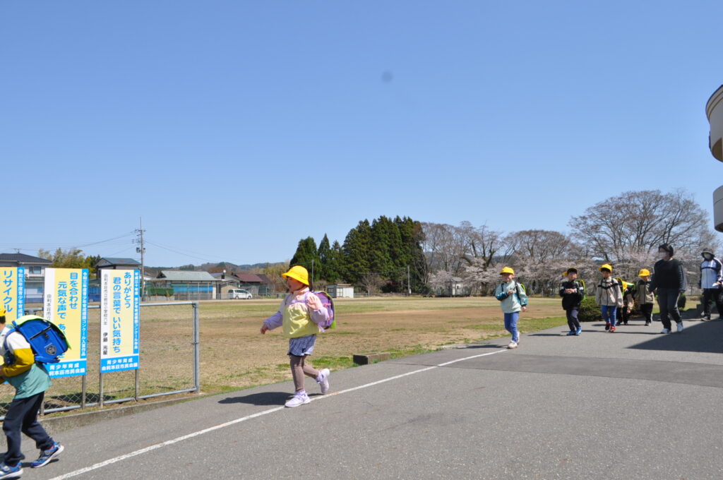 10日と13日は、1年生は給食を食べずに下校しました。下校の時間も、下校ルートをしっかり覚え、安全に帰るための大事な勉強です。10日は雨の中の下校でしたが、13日は快晴!グラウンドの桜を横目に、元気に帰っていきました。