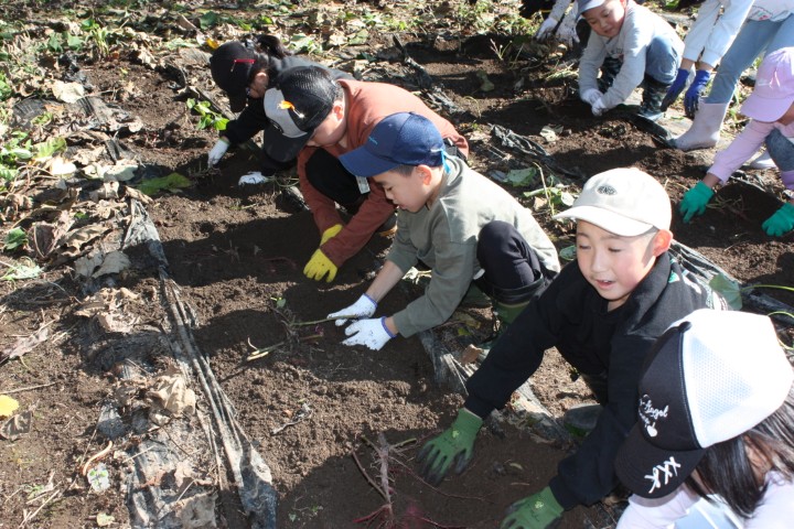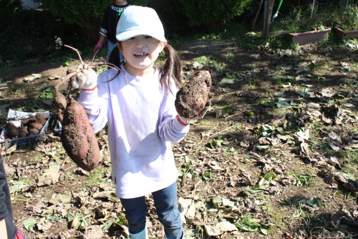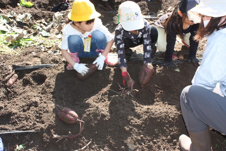 温かい日差しの中、大きなサツマイモをたくさん収穫することができ、子どもたちは大満足でした。 秋の恵みに感謝しながら、楽しい収穫体験をすることができました。