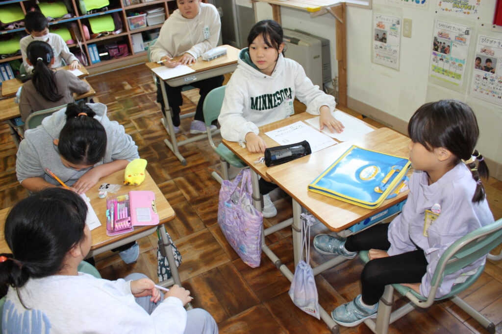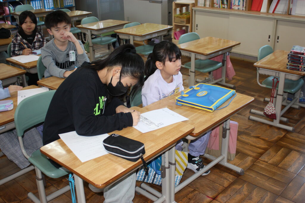 ペアで相談して学校や全校児童へのメッセージを書き、メッセージをペンでなぞったら、最後に残り日数に色を塗りました。