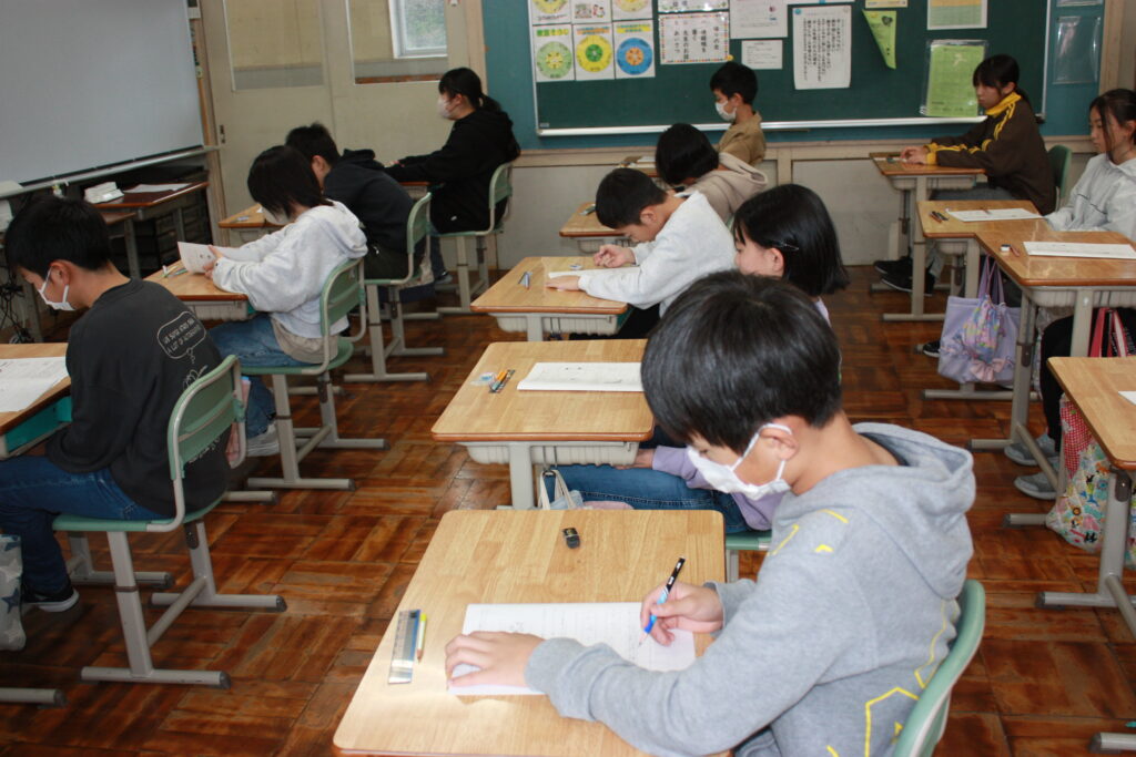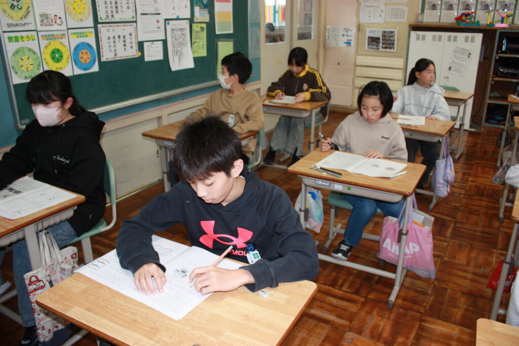 4・5年生が秋田県学習状況調査に取り組みました。実施教科は、4年生が国語、算数、理科の3教科、5年生は国語、算数、理科、社会の4教科です。テスト後には、学びに向かう姿勢や意欲面を把握するためにアンケート調査にも取り組みました。6年生は、アンケート調査のみ実施しました。