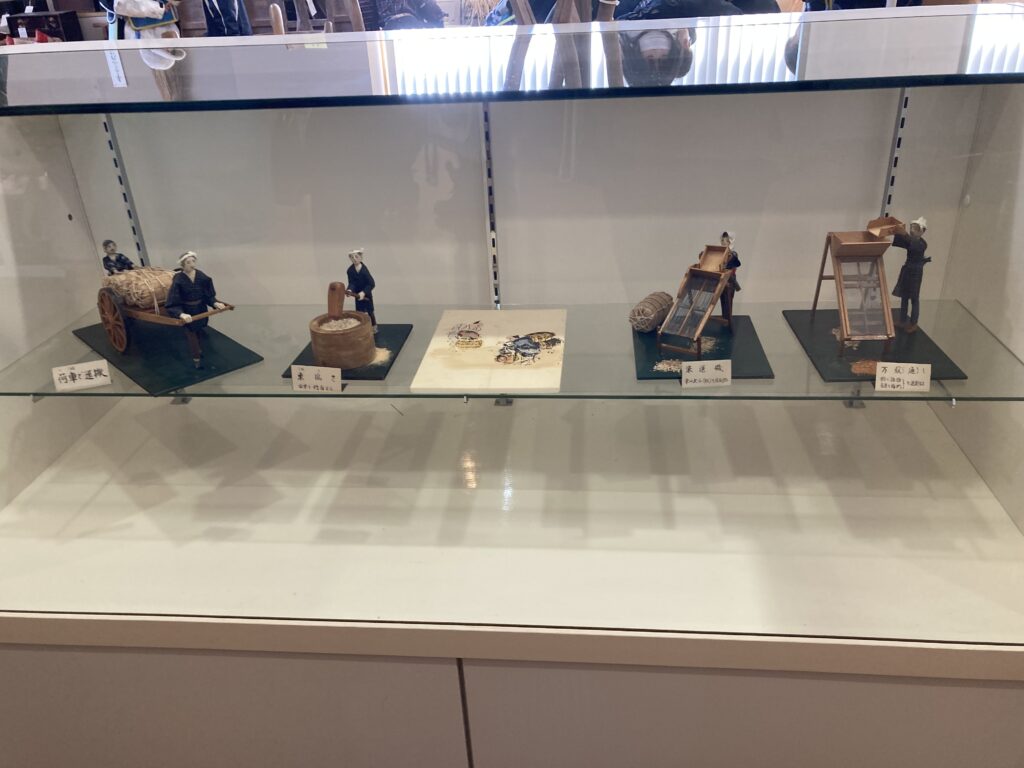 大内歴史民俗資料館では、主に昔の人々の使っていた農機具や生活用品の実物を見てきました。