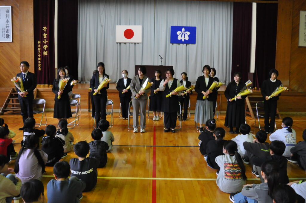令和7年度末、閉校に伴う教職員異動で、15名の先生方が本荘東小学校以外の場所へ転出することになりました。別れはとても寂しいことですが、新天地でのご活躍をお祈りし、先日卒業した6年生も含め、全校児童で15名の先生をお送りしました。