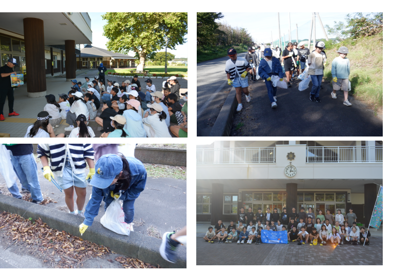 西目海洋センターの齋藤さんを講師に、紙芝居を使いながら趣旨について説明を聞いた後、敷地内や学校周辺のごみ拾いをしました。陸地でのごみはやがて海につながり、海の恵みをいただく私たちにかえってきます。「できることから始めよう」と行動に移すことが大事だと学びました。