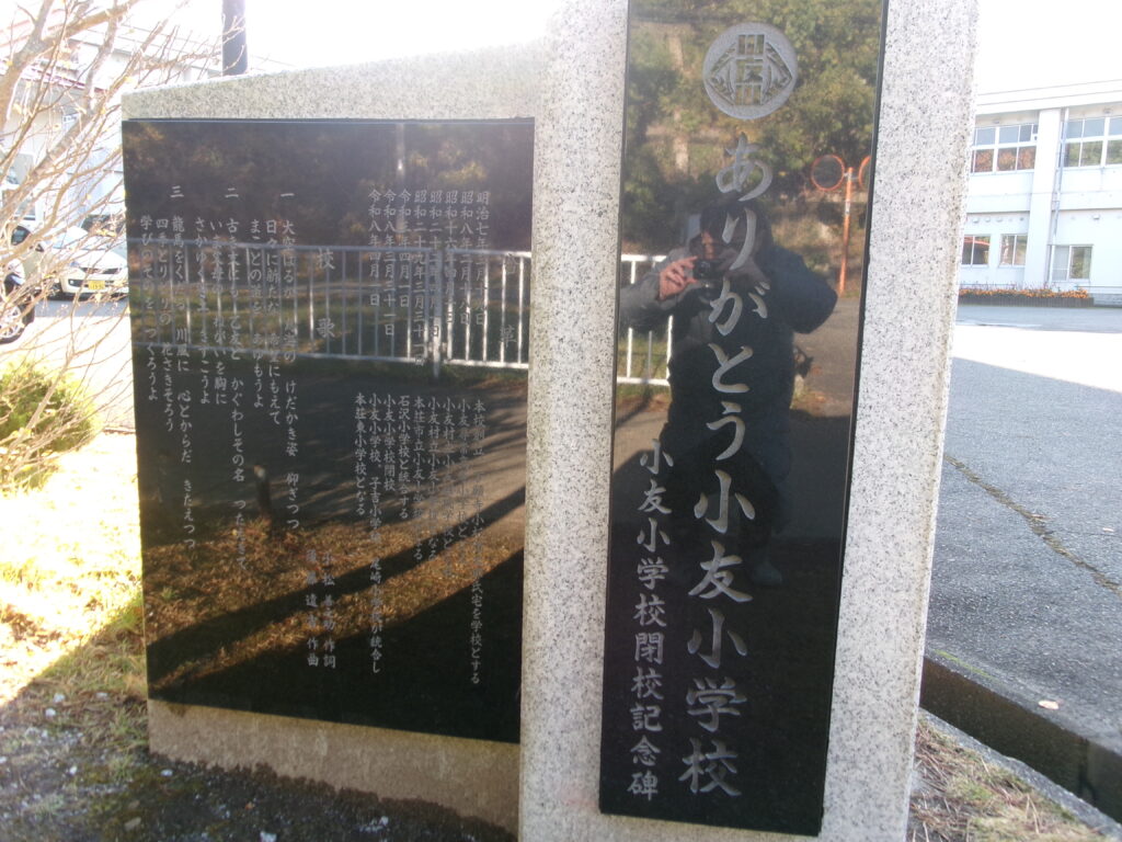 11月1日(土)の閉校記念式典に合わせ、閉校記念碑が完成しました。本校のおしゃれな校門に、本校沿革と校歌を記載した石版を埋め込み、閉校記念碑としております。目の前には、保育園へと続く鯉が泳ぐ遊歩道、上には街灯があり、末永く、皆さんの目に留まることを期待しております。