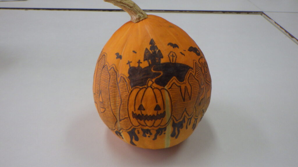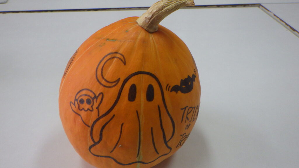 10月はハロウィーンということで、校内では様々な飾り付けが見られます。さらに、生活支援サポーターの先生が、見事なカボチャを飾ってくれました。ぜひご覧ください。