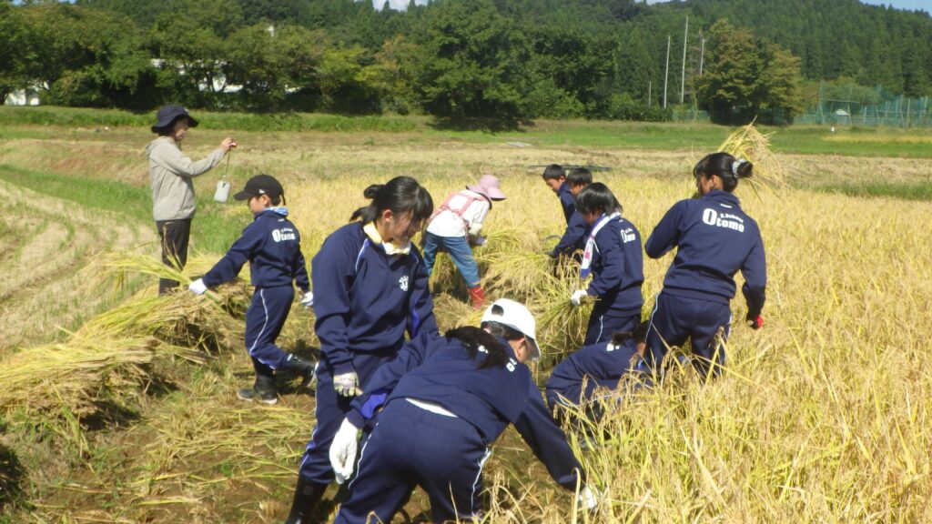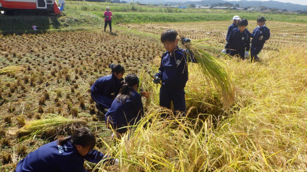 10月3日(金)は、5年生が稲刈り体験を行いました。田植え同様、地域の方々の指導のもと、鎌を使って稲を刈りました。12人と少ない5年生ですが、稲をどんどん刈っていました。この後、5年生は恒例の「だまこ餅」をつくって食べる予定です。楽しみです。
