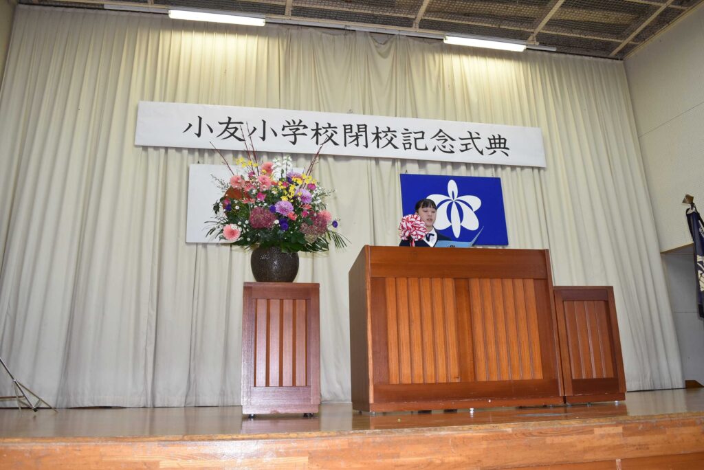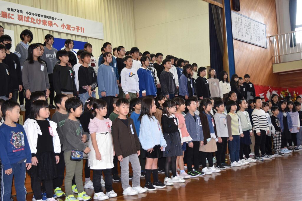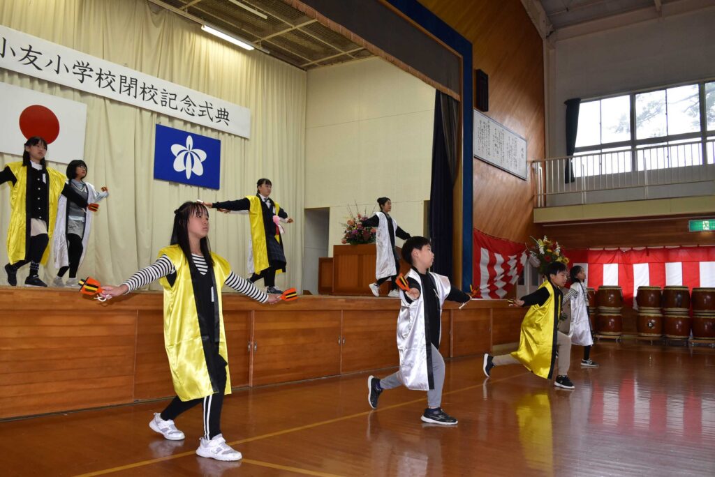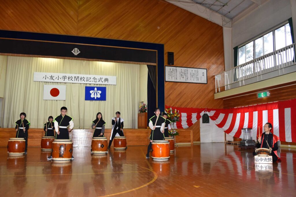 11月1日(土)に開催された小友小最後の学習発表会の際には、多くの保護者やご家族の皆さんにおいでいただき、ありがとうございました。今年度の学習発表会は、小友地区文化祭と共同による閉校事業であり、特に6年生は「お化け屋敷」「お茶会」など大活躍でした。子どもたちの成長した姿を見るだけでなく、お子さんと文化祭を楽しむことで、よい思い出になりましたら幸いです。学習発表会に合わせて、閉校式典へのご参加ありがとうございました。本校では、保護者の皆さんや地域の方々も参加いただきたいと考え、学習発表会同日の開催としました。挨拶児童代表、校旗返納児童代表、アトラクションの太鼓クラブメンバー、ソーランメンバーは緊張したかと思いますが、それぞれが力を出して盛り上げてくれました。
