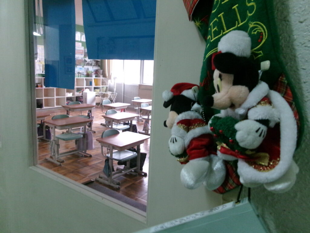 11月末に入り、校内ではクリスマスの装飾が見られるようになりました。本校職員が私物も提供してくれて、子どもたちを明るい気持ちにしてくれています。そんな季節ですが、ただいまインフルエンザが流行し、低学年は学年閉鎖となっています。一階はさみしいですが、来週から元気な声が聞こえてくることを楽しみにしています。