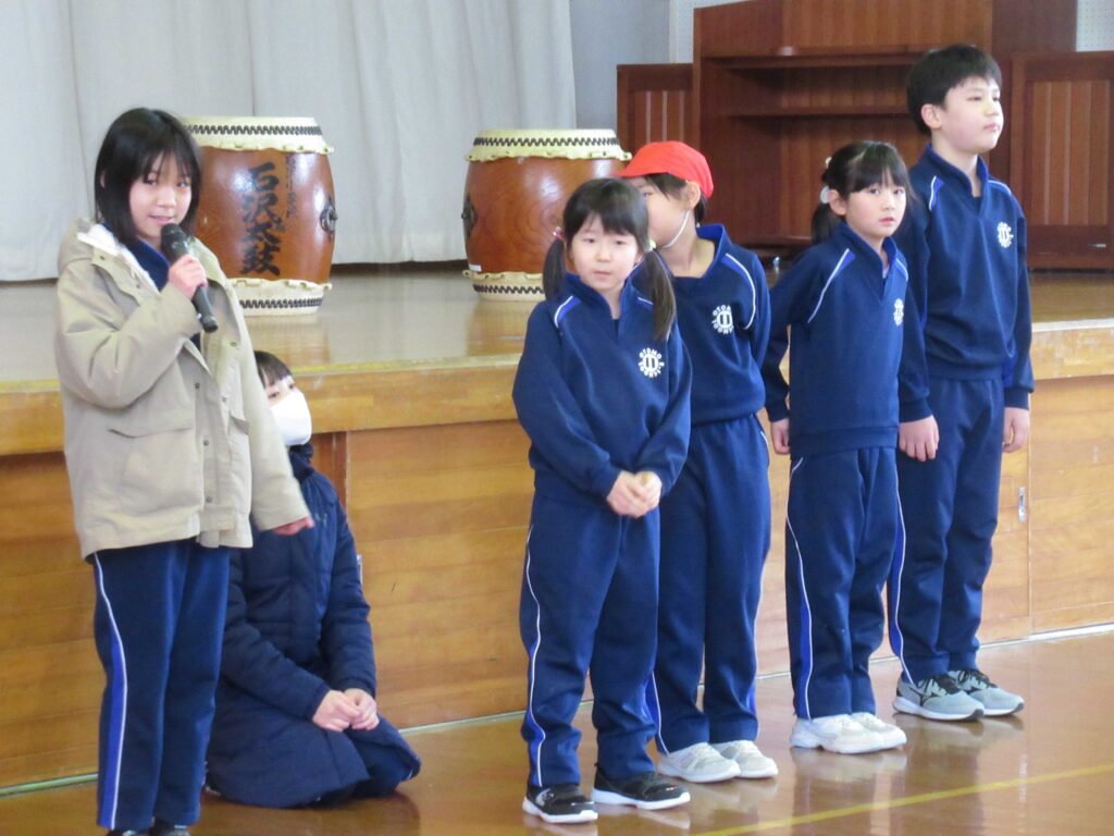 2月6日(金)は小友小最後の全校なわとび集会がありました。この集会は、各自が2種類、なわとびの技を選択し、30秒間に何回跳べるかを競うものです。6年生が学年閉鎖明けでしたが、5・6年生が長縄の技を演示してくれました。風邪で体調を崩している児童もおりましたが、今できる技でそれぞれが持てる力を発揮していました。