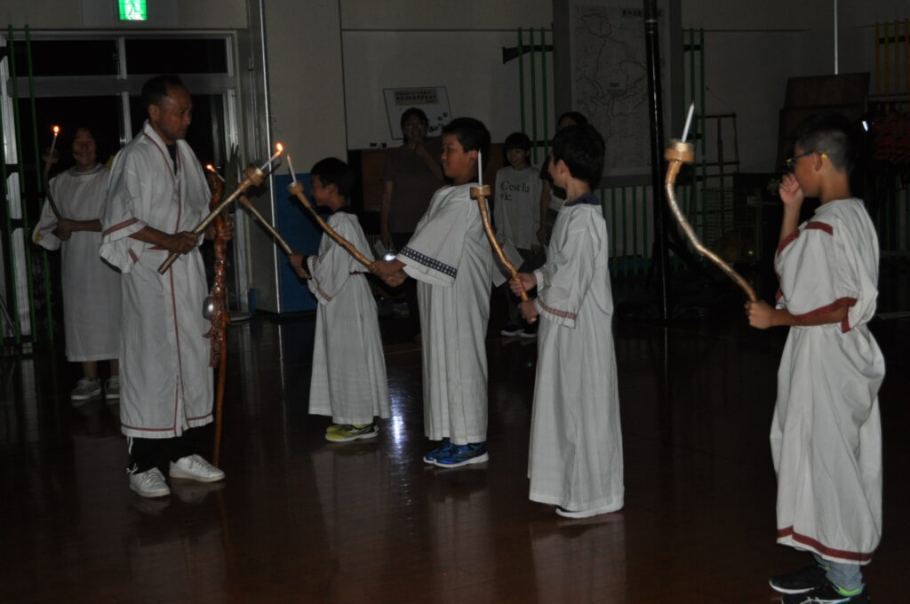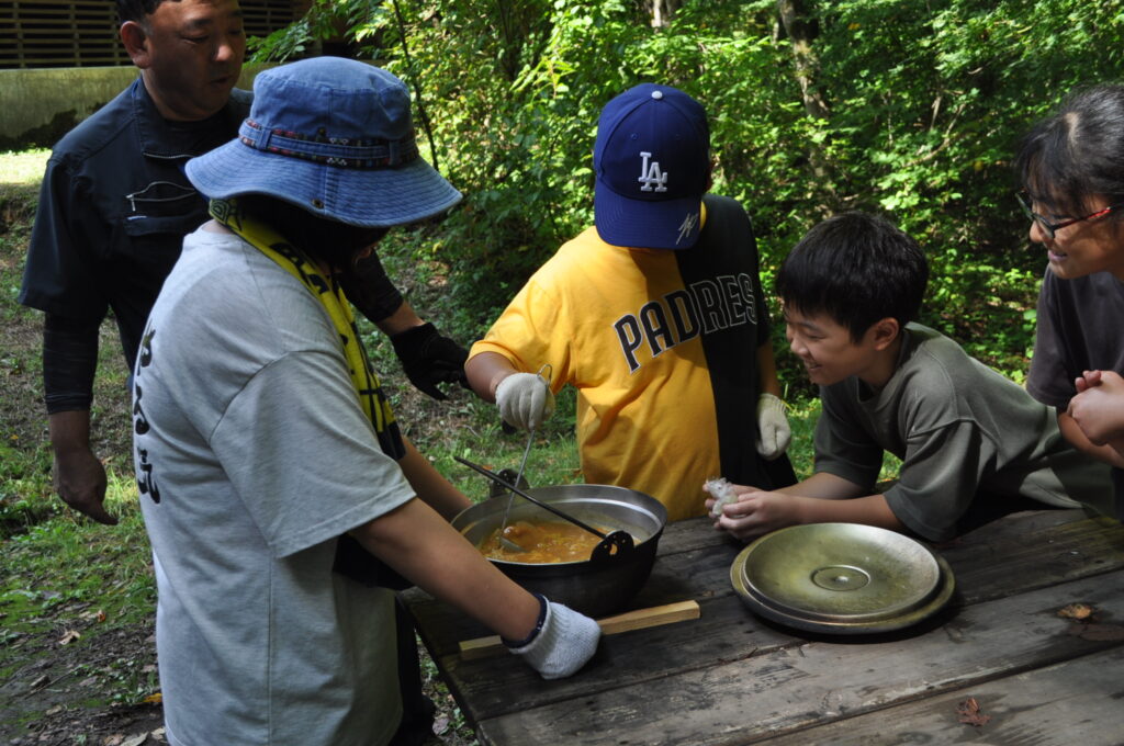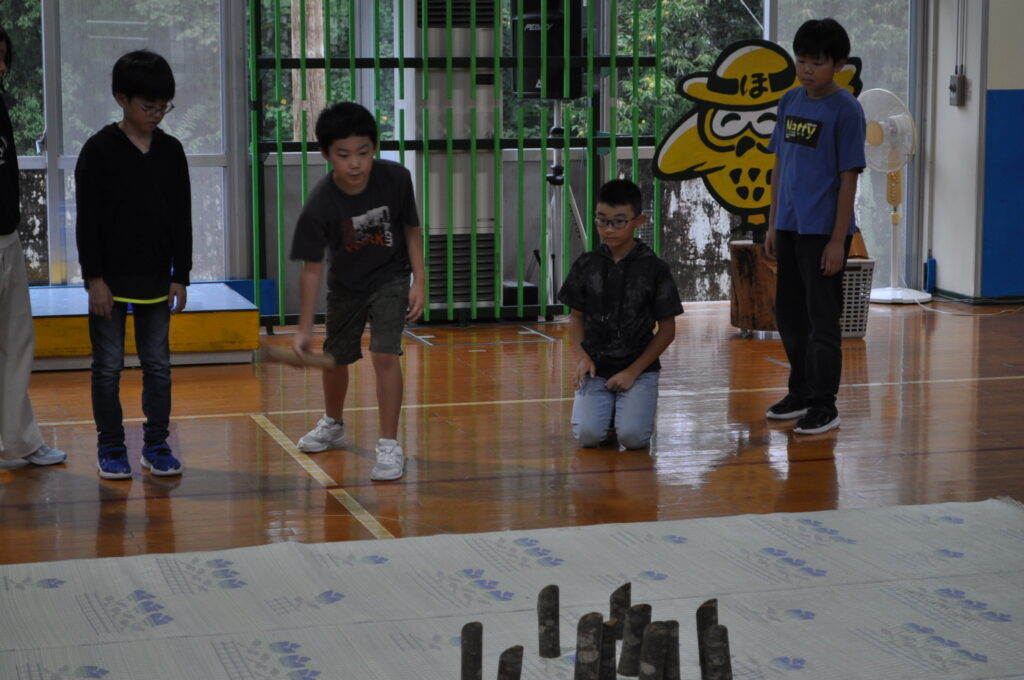 秋田県立保呂羽山少年自然の家「ほろわんぱーく」で1泊2日の自然教室を実施しました。めあては3つです。①自分だからできること、自分にしかできないことを発見しよう。②友達と助け合って、物事を最後までやりとげることの大切さを知ろう。③自然の大きさ、すばらしさを全身で感じとろう。今年度はカヌー体験はできませんでしたが、モルックやキャンドルファイヤー、野外炊飯など初めてのことをたくさん経験しました。助け合い、認め合えるいっぽ学年のよさがたくさん発揮された自然教室となりました。