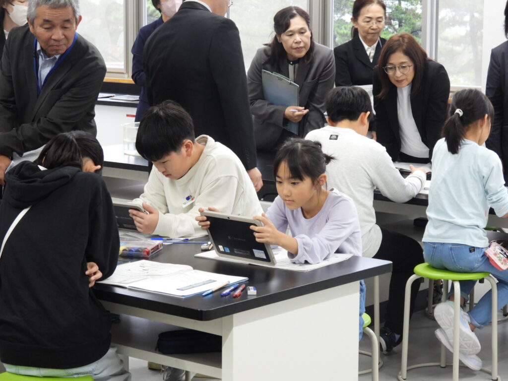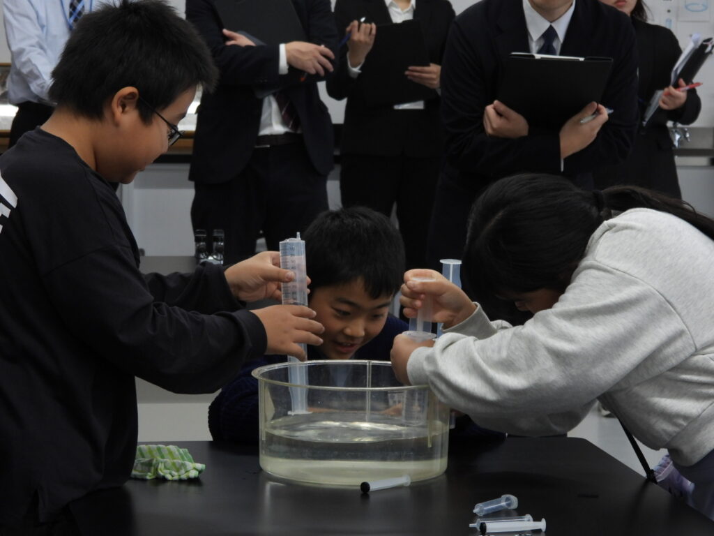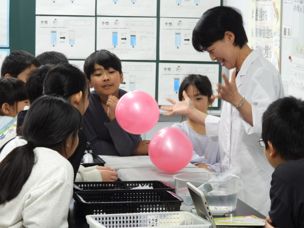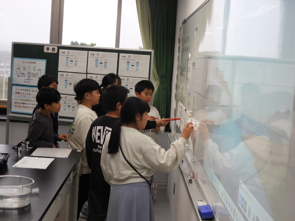 4年1組の子どもたちが、新山小学校を会場に行われた理科の授業研究会で「とじこめた空気と水」の授業を公開しました。秋田県内外の先生方が参観する中、いつも通りに、進んで課題に向かい、主体的に学び合い、9名で楽しく学習することができました。参観した先生方から「感動しました」と感想をいたただきました。