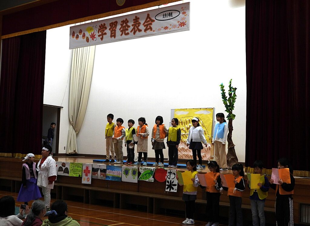 今年度の学習発表会を体育館で行いました。1年生の「歓迎のあいさつ」から始まり、最後の全校合唱「Wish」、児童代表あいさつまで、どの学年も一生懸命練習した力を発揮し感動いっぱいの学習発表会となりました。学年発表も学年カラーのあふれる発表となり大内っこの様々な顔を見ることができました。たくさんの方々に見守られ、たくさんの拍手や笑いをいただき、大満足の大内っこです。学習発表会終了後は、第2回学校運営協議会も行い、前期を振り返り、後期の見通しをもつことができました。