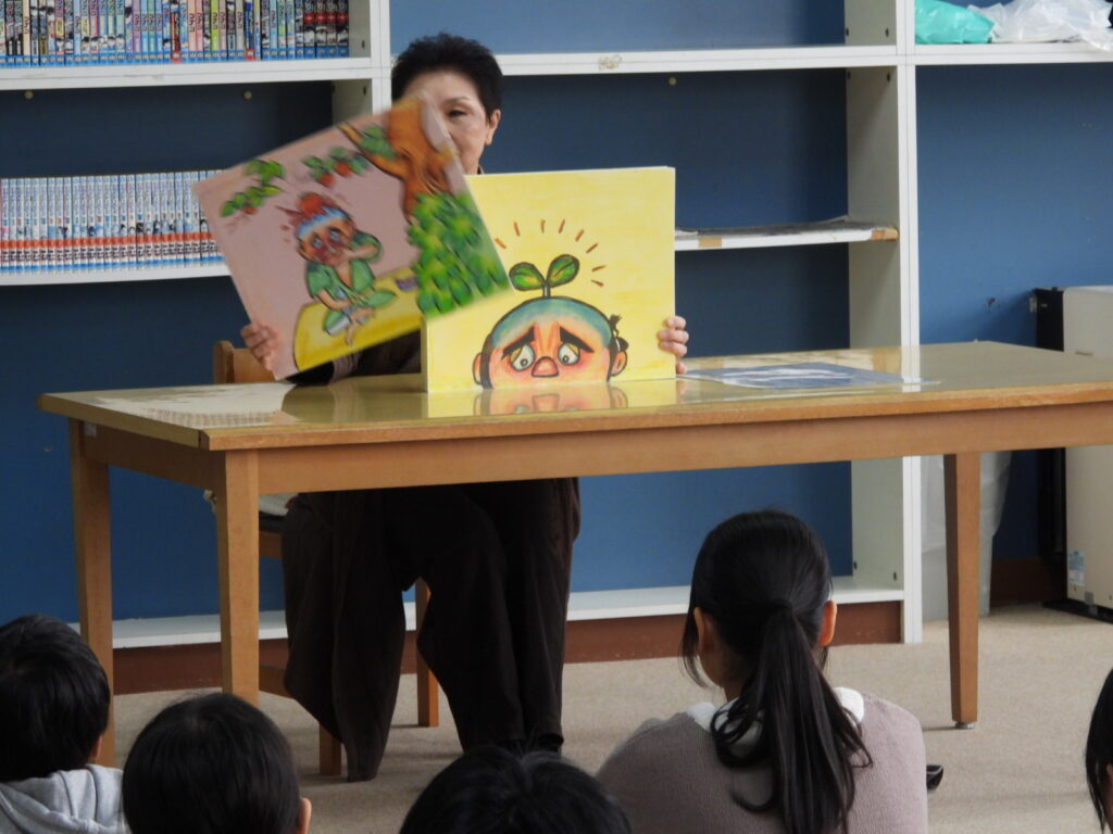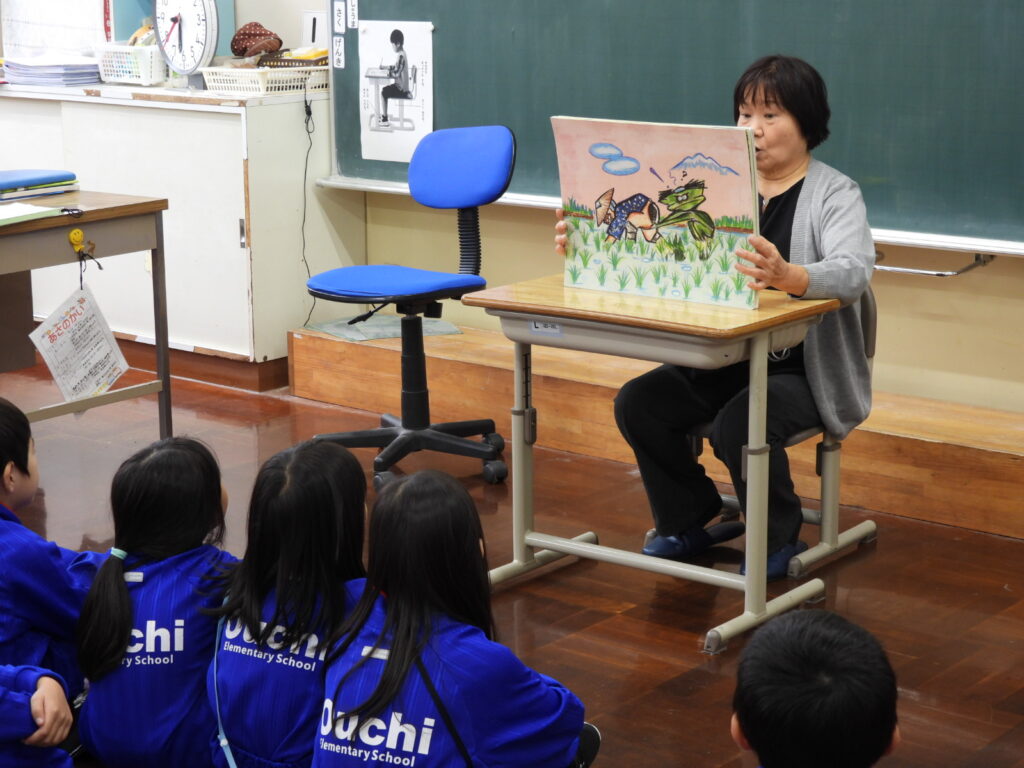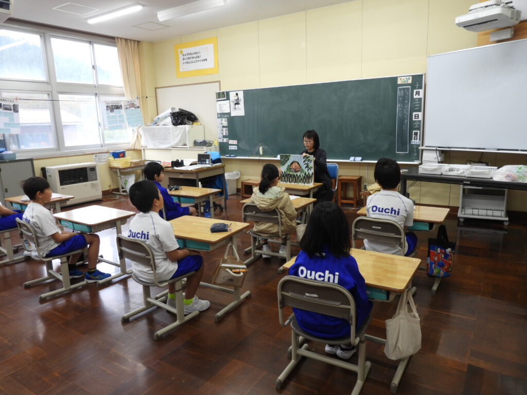 大内小学校では、毎月、大内地域の読み聞かせボランティア「すずめの巣」のみなさんによる読み聞かせの会を朝の時間に行っています。10月の読み聞かせの会は、東由利地域出身の石渡力造さんの紙しばい特集でした。どの学年も石渡さんが作成した紙しばいと読み手の秋田弁を通して、秋田の民話の世界に浸りました。