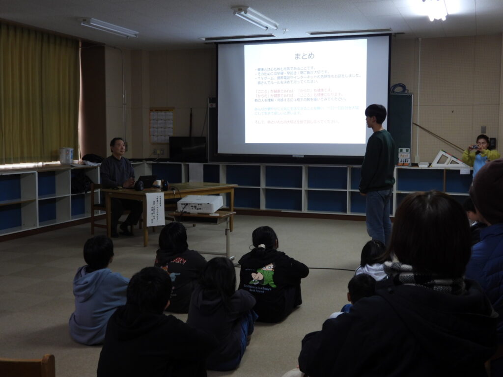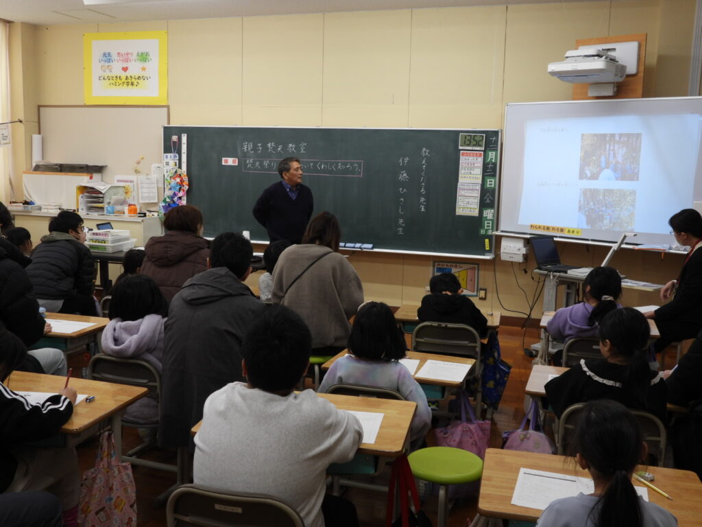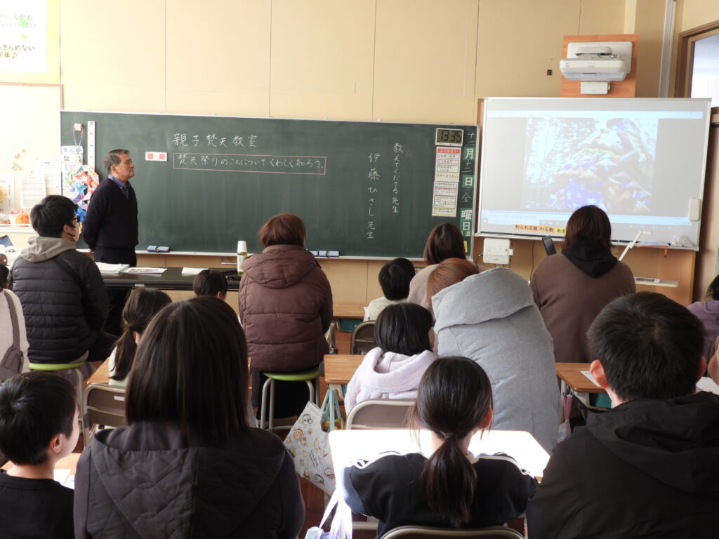 PTA授業参観日・会計監査・三役会を行いました。悪天候の中、たくさんの保護者の皆様に参加いただきました。1年生は生活科「アサガオのつるを使って親子でクリスマスリースを作ろう!」 2年生は生活科「おもちゃで遊ぼう」自作のおもちゃの作り方や遊び方を説明し、おうちの方と一緒に遊びました。3年生は、ふるさと先生の伊藤 久さんをお迎えして、「親子梵天教室」を行いました。4年生は総合的な学習の時間「10歳の自分」ICTを活用し、自分のプロフィールを作成し発表しました。5年生は外国語科「I can sing well」6年生は学校医の伊藤 伸一先生をお迎えして「移動保健教室」を行いました。また、冬休み前ということもあり、学年・学級懇談では、これまでの頑張りを振り返ったり、冬休みの生活や学習について確認したりしました。保護者の皆様からは、家での様子や学校生活で気になっていること等のお話も聞くことができ、有意義な時間となりました。