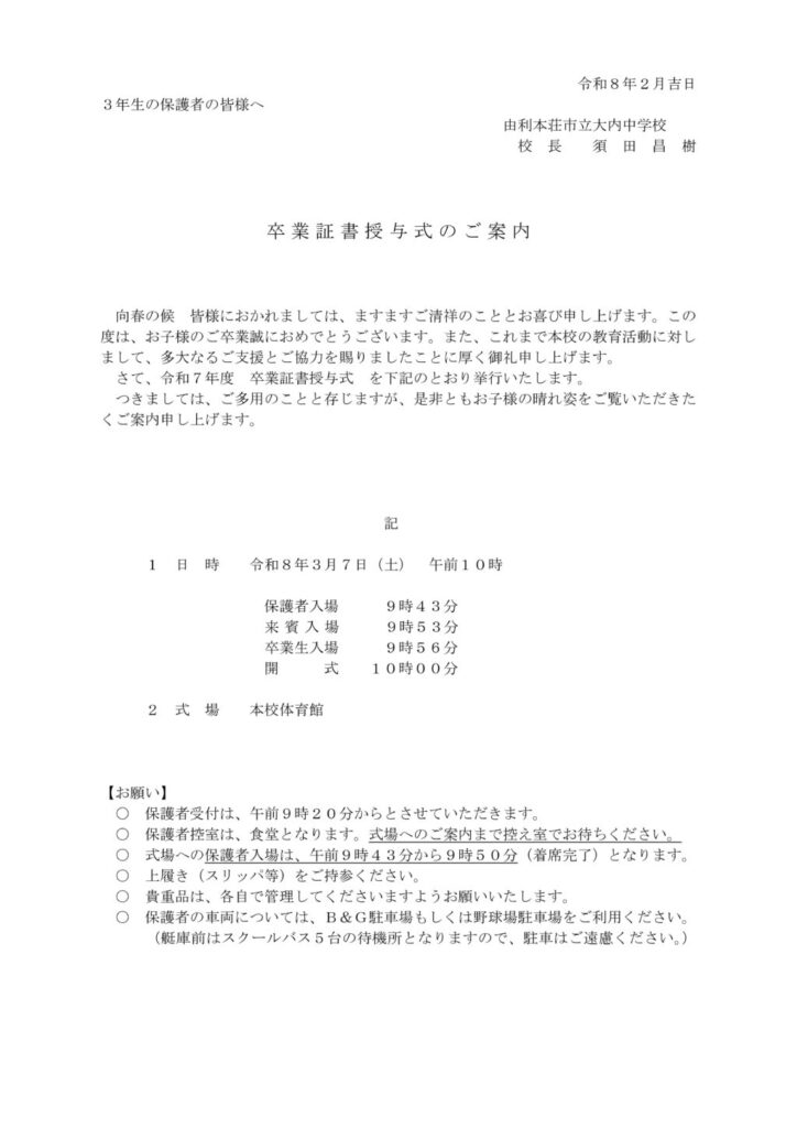 卒業証書授与式(3月7日)のご案内