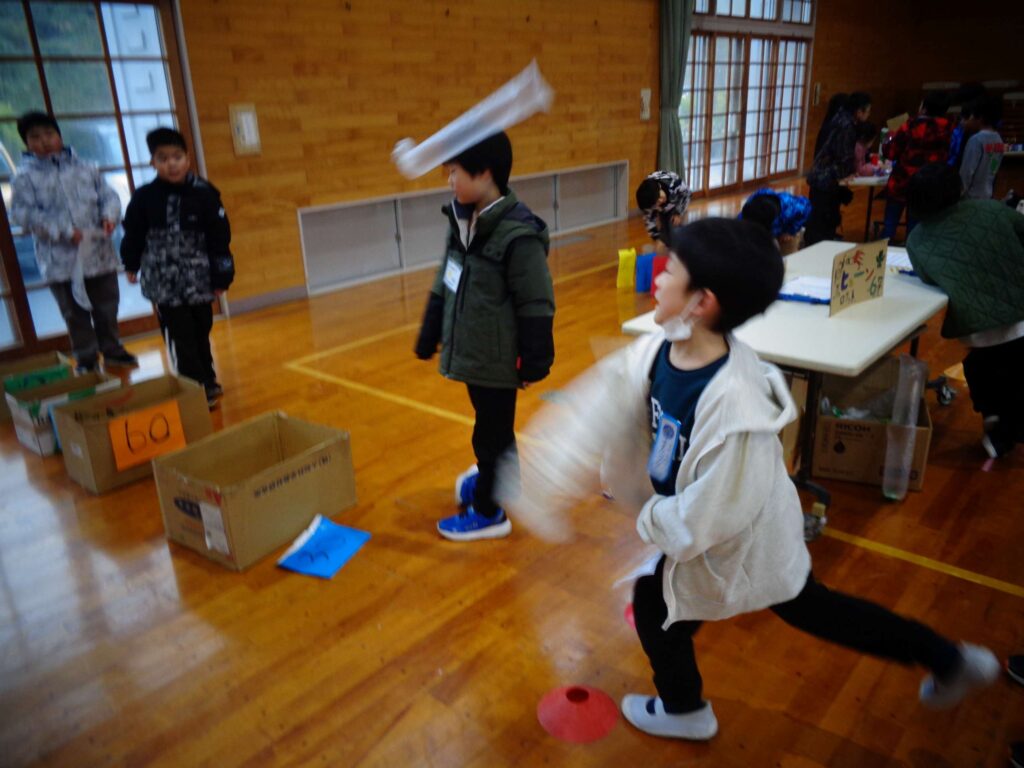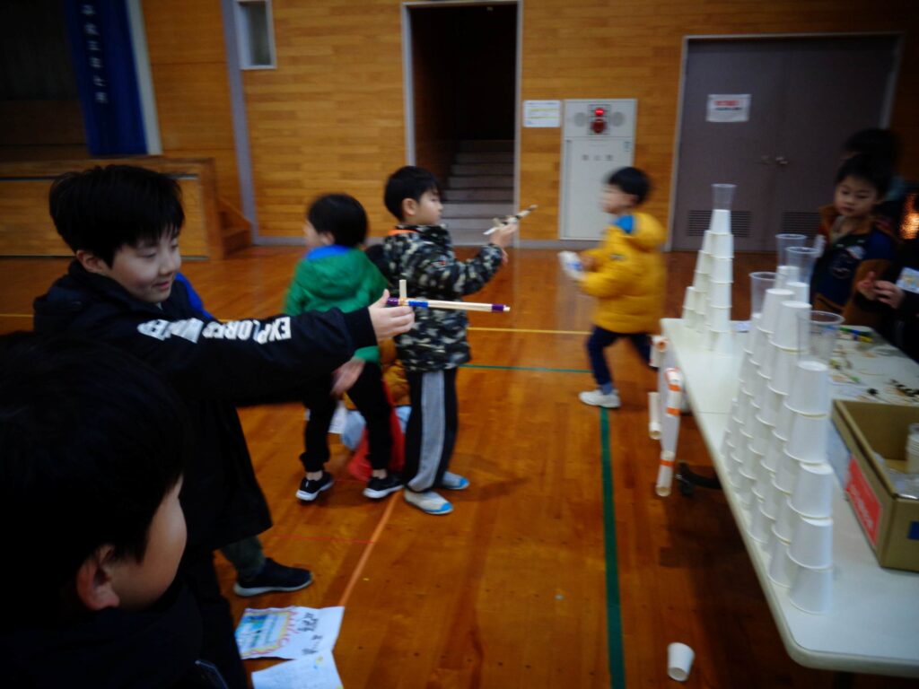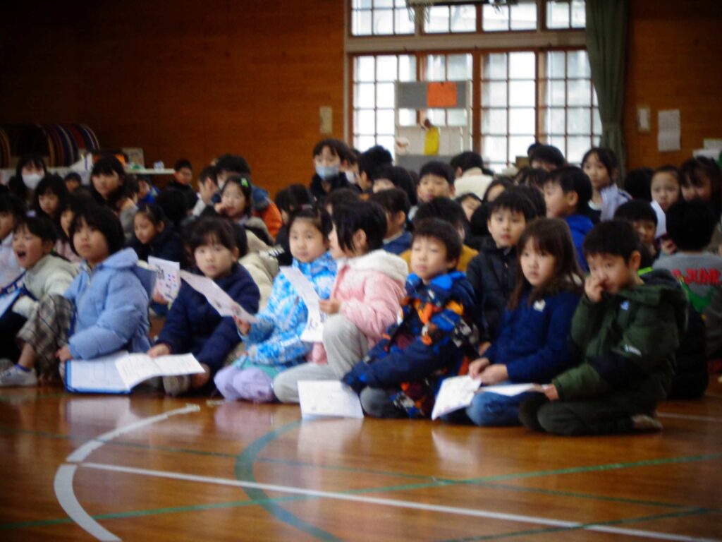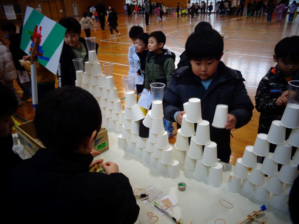 12月15日(月)、2年生が生活科の学習でつくった「スマイルランド」へ、1年生を招待して一緒に楽しみました。2年生は、身の回りにある材料を活用して、「ぐりぐりかめさん」「ビュンビュンカー」「ビリビリ糸でんわ」など、10種類以上のおもちゃを作りました。1年生は、2年生からもらったスマイルランドの地図をもっていろいろなコーナーで遊びを楽しみました。この日はとても寒かったのですが、体育館の中は1年生と2年生の笑顔でつつまれ、温かい雰囲気の学習となりました。