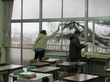 PTA授業参観の前に、学校後援会窓拭きボランティアを行っていただきました。寒い中でしたが50名以上の方にご協力いただきました。