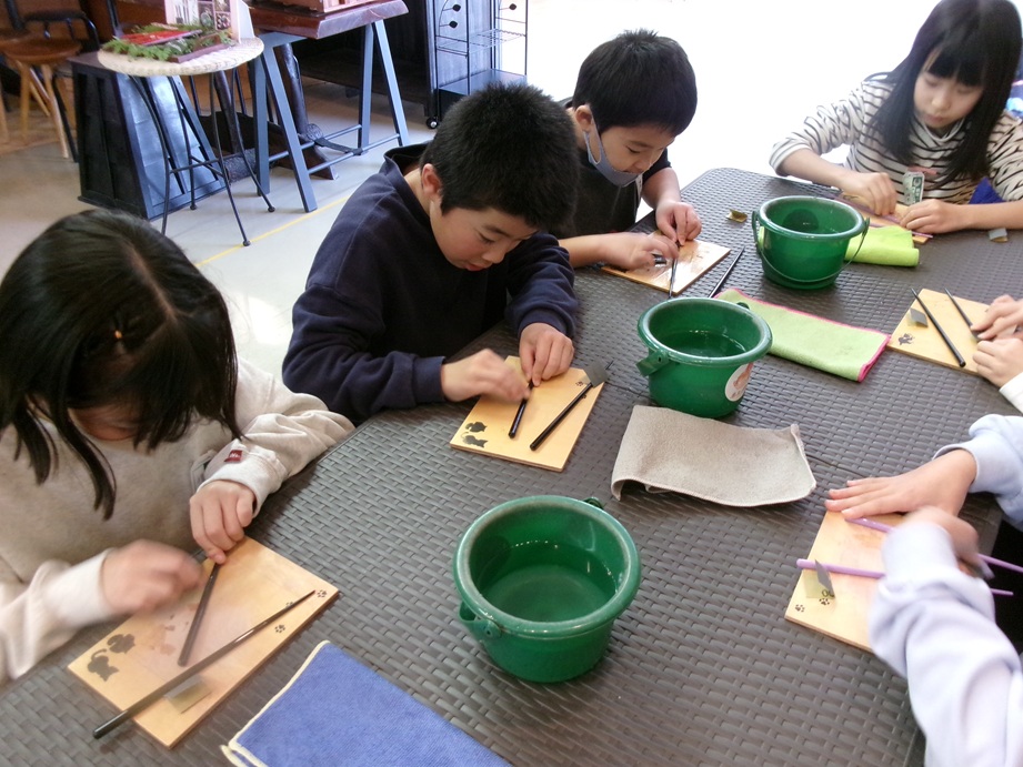 4年生が、ふるさと村にバスで行き、秋田県に古くから伝わる伝統工芸品づくり体験をしてきました。