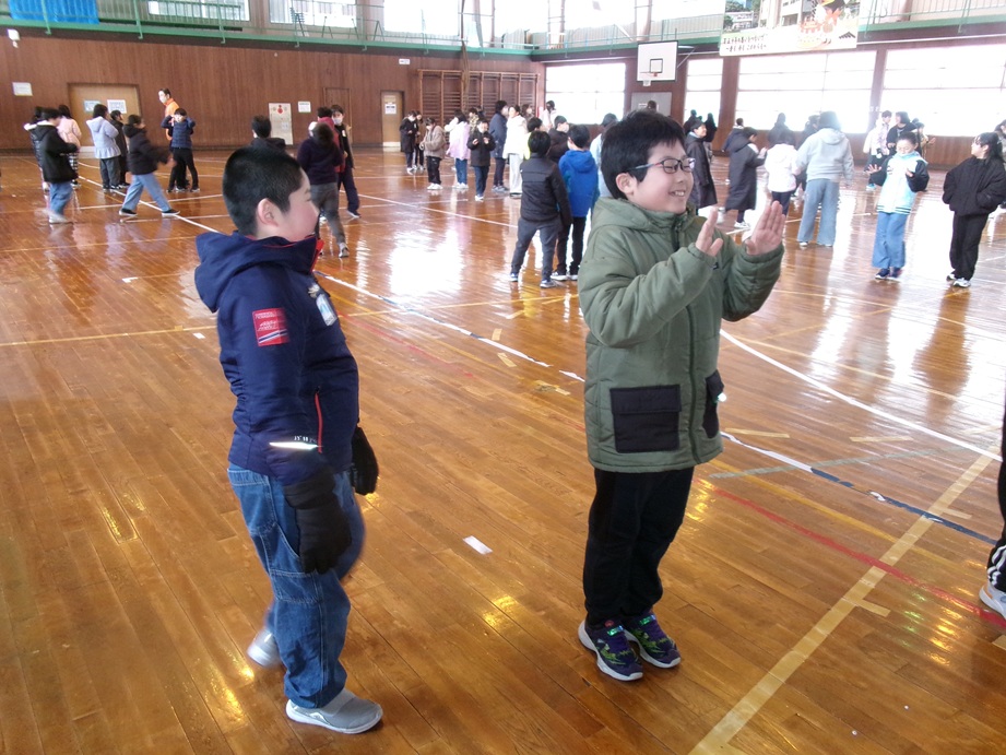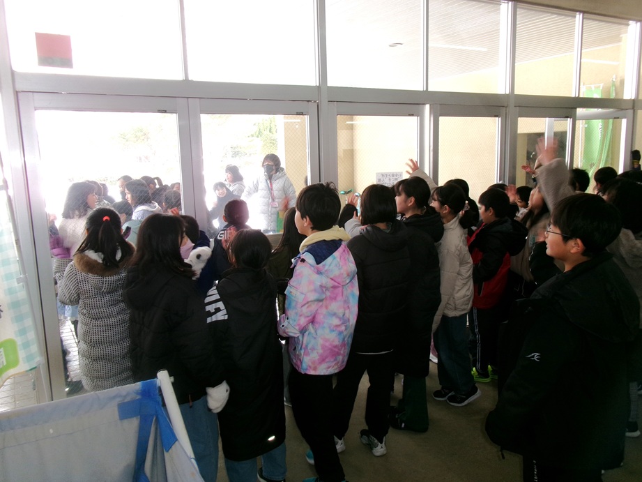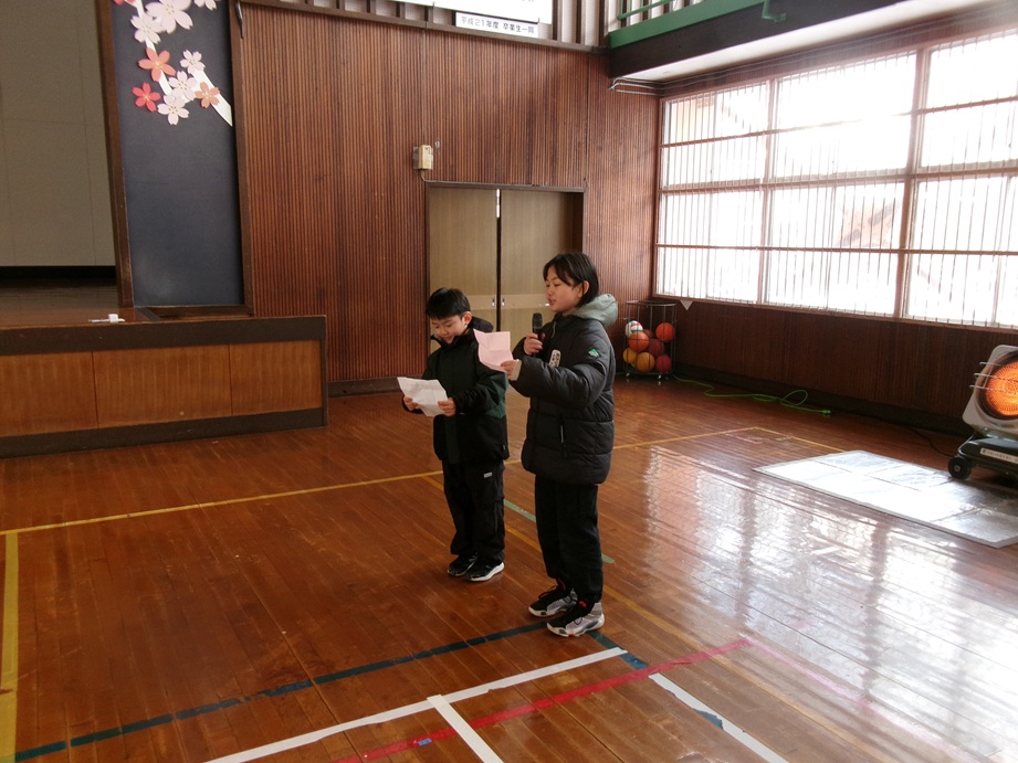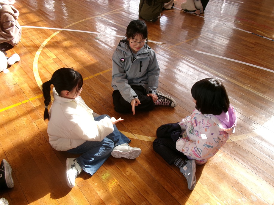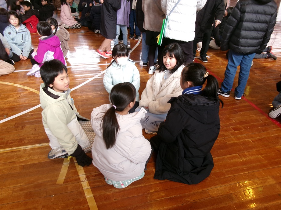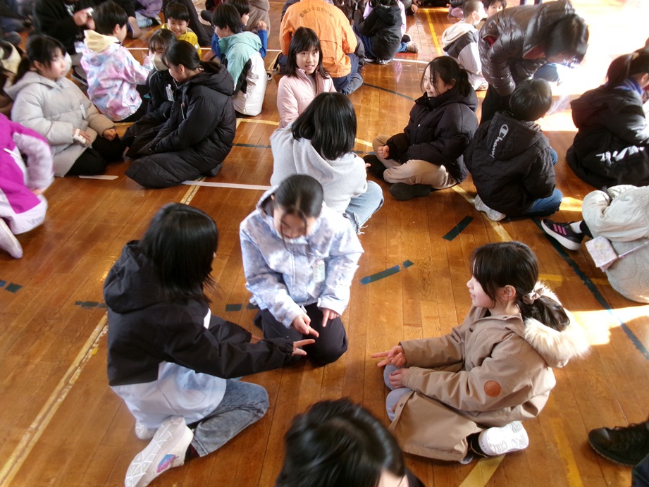 4年生が統合する尾崎小4年生と岩城少年自然の家の出前講座を活用して交流しました。