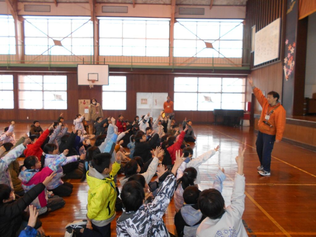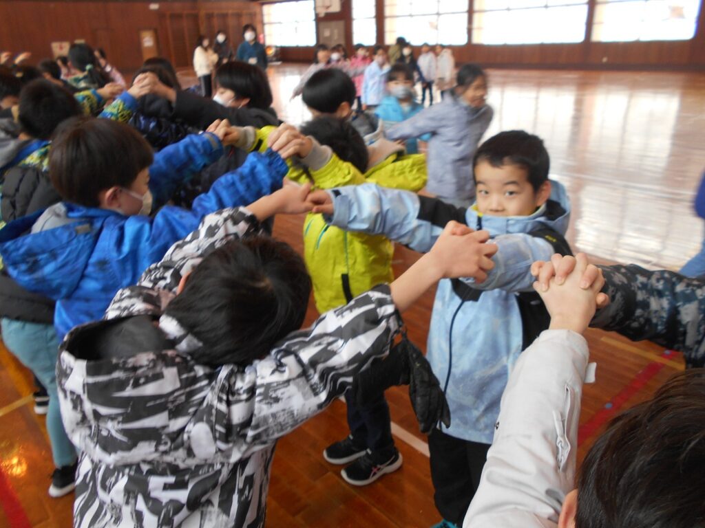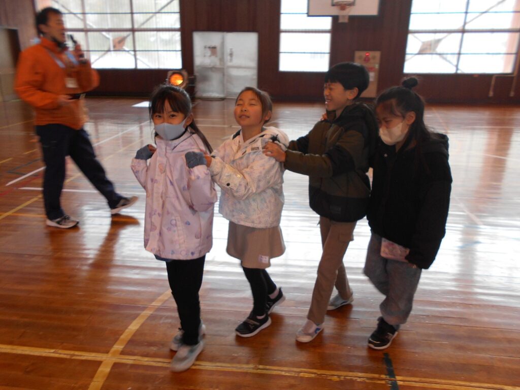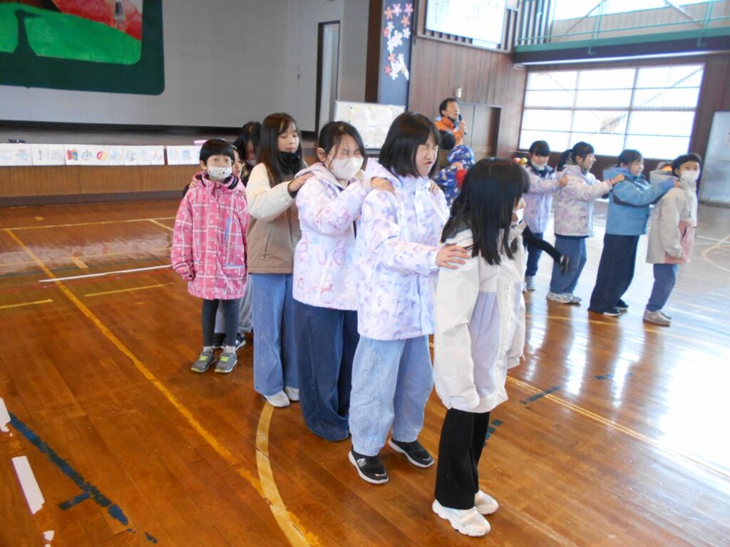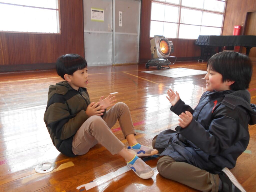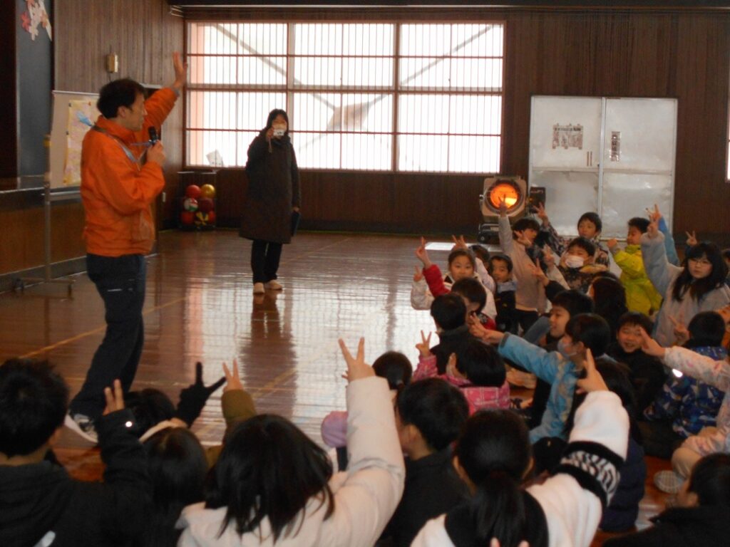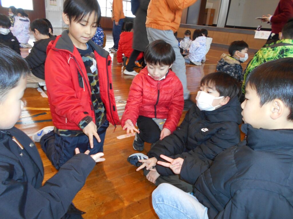 3年生が統合する尾崎小3年生と岩城少年自然の家の出前講座を活用して交流しました。