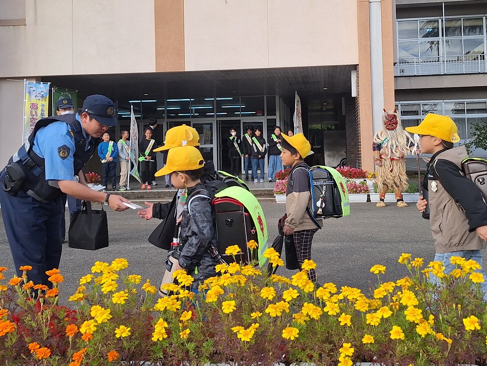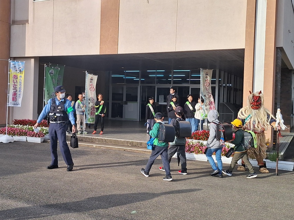 警察署の方と児童会、そしてなまはげさんと合同であいさつ運動をしました。なまはげさんは近寄りがたい怖さがありましたが、いつもよりニコニコ笑顔の朝でした。