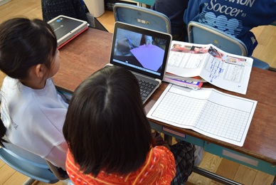 11月27日(木)に授業研究会がありました。今回は、2年生の国語科の授業を提示しました。おもちゃの作り方について、1年生のお友達にとって分かりやすい説明になるように、文章を工夫する学習でした。子どもたちは、あらかじめタブレット端末で撮影した説明場面を見直し、ペアの友達と一緒に、修正したり付け加えたりするとよいことについて一生懸命に考えていました。授業後の協議会では、参観していただいた先生から、2年生の様子についてたくさんほめていただきました。続きの学習もがんばって、更にレベルアップさせることができるといいですね!