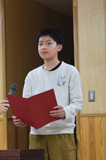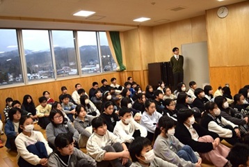 明日から始まる冬休みを前に、全校集会を行いました。9月中旬以降、クマの出没に悩まされましたが、保護者の皆様や地域の皆様をはじめ、各機関のご協力もあり、無事に本日を迎えることができました。子どもたちのためにご協力いただいた多くの方々に心より感謝いたします。集会では私から、毎日の学校生活の中で、全校の皆さんの成長の様子が見られ、うれしく思っていることを伝えました。また、冬休み中にがんばってほしいことについても話しました。子どもたちは真剣に話を聞いていました。そして、代表児童2名による、学校生活の振り返りについての発表がありました。どちらの発表も、しっかりと自分自身を見つめるとともに、これからの目標を明確にしていて、素晴らしかったです。冬は交通事故はもちろん、雪による事故も心配されますので、まずは健康で安全な生活を送ることができるよう願っています。そして休み明けには、元気な子どもたちに会えることを楽しみにしています。