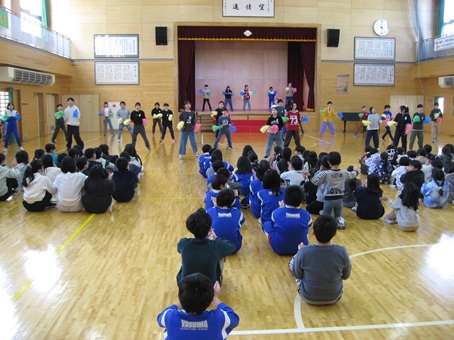 先日「6年生を送る会」が行われました。しかし、その頃、6年生に欠席者が複数いたことから、6年生による発表については延期をしていました。6年生の子どもたちの、「なるべくみんながそろったところで6年生の発表をしたい」という願いを尊重しての対応でした。そして、感染症の影響もようやく落ち着いたことから、この日、ついに発表の時を迎えました。楽しいクイズで全校のみんなが楽しんだ後は、6年生によるダンスが披露され、体育館全体が盛り上がりました。今年度、全校のリーダーとしての役割を見事に果たした6年生らしさが感じられる、素晴らしい発表でした。