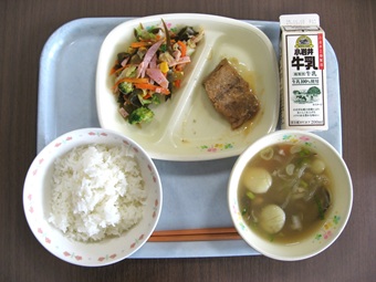 今日の給食は「群馬県郷土料理メニュー」で、献立は、すいとん汁、ごはん、サバのみそ煮、元気サラダ、牛乳でした。すいとんは、もちもちとした食感がおいしい食材で、日本の各地で作られていますが、群馬県の郷土料理の一つとなっています。群馬県は昔から小麦の生産が盛んで、小麦粉を使った料理が多く伝承されています。すいとんも、その代表的な料理で、県内全域で親しまれています。地域によって「とっちゃなげ汁」「つめりっこ」「おつゆだんご」「ねじっこ」など、さまざまな名前で呼ばれているそうです。給食では、いろいろな地域のメニューを食べることができて、とても楽しいですね。