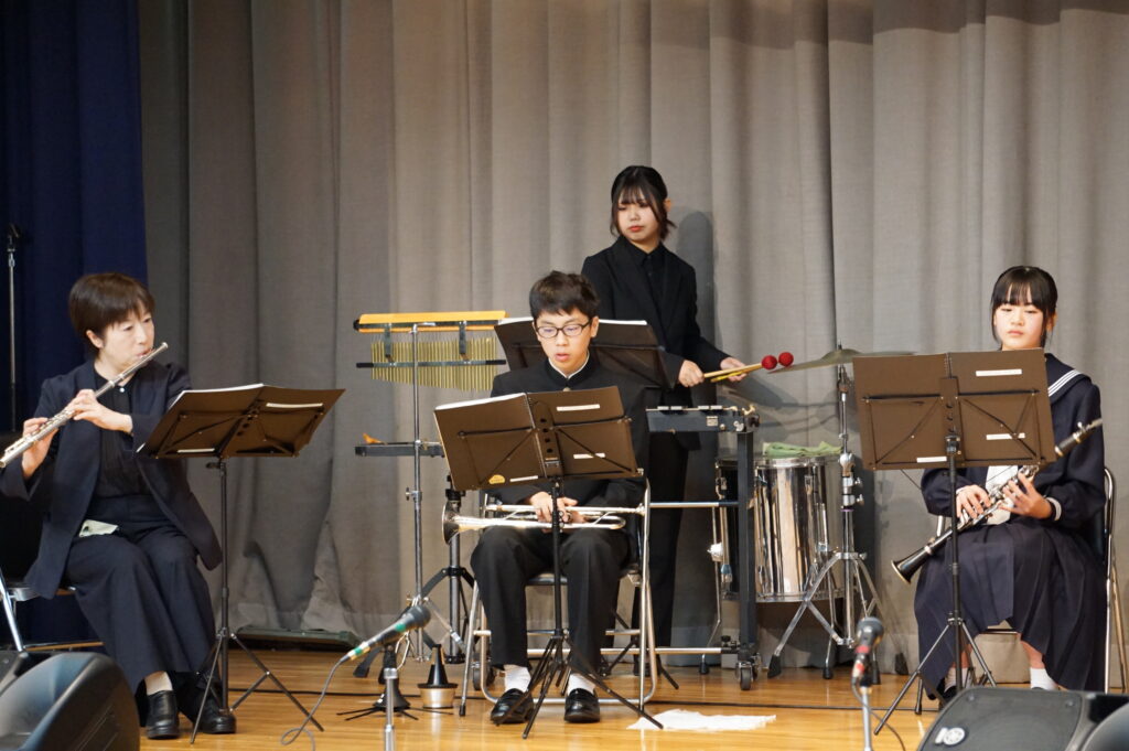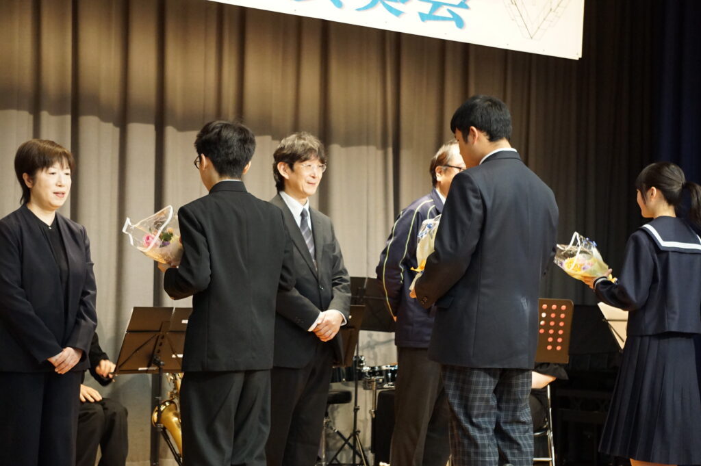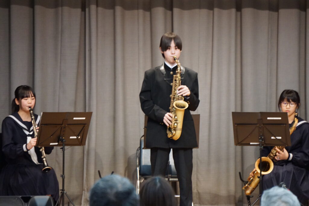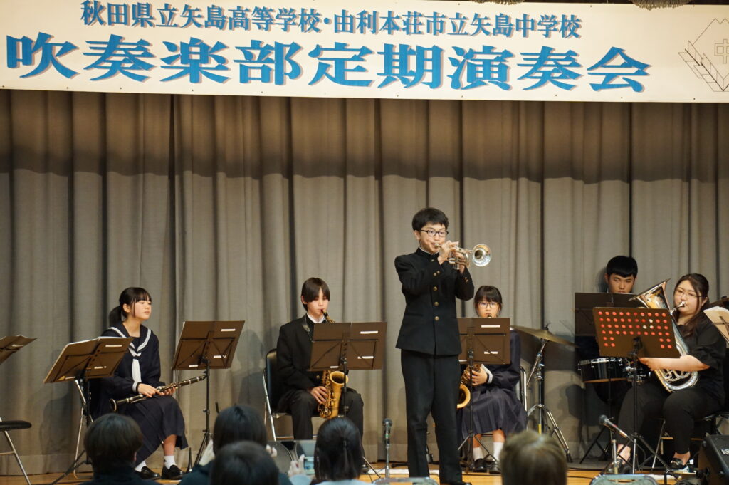 25日(土)、日新館で矢島中学校・矢島高等学校定期演奏会が開催されました。中学校3年生の部員にとっては最後のステージとなる演奏会でした。これまで部活で練習してきた曲から7曲を、卒業生の方にも参加協力していただいて上手に楽しく演奏できました。