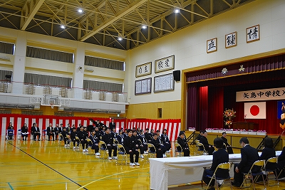 4月8日(水)、穏やかな春の日差しのもと、矢島中学校第82期生30名の入学式を挙行しました。新しい制服に身を包んだ新入生の表情からは、これから始まる学校生活への期待が感じられます。
